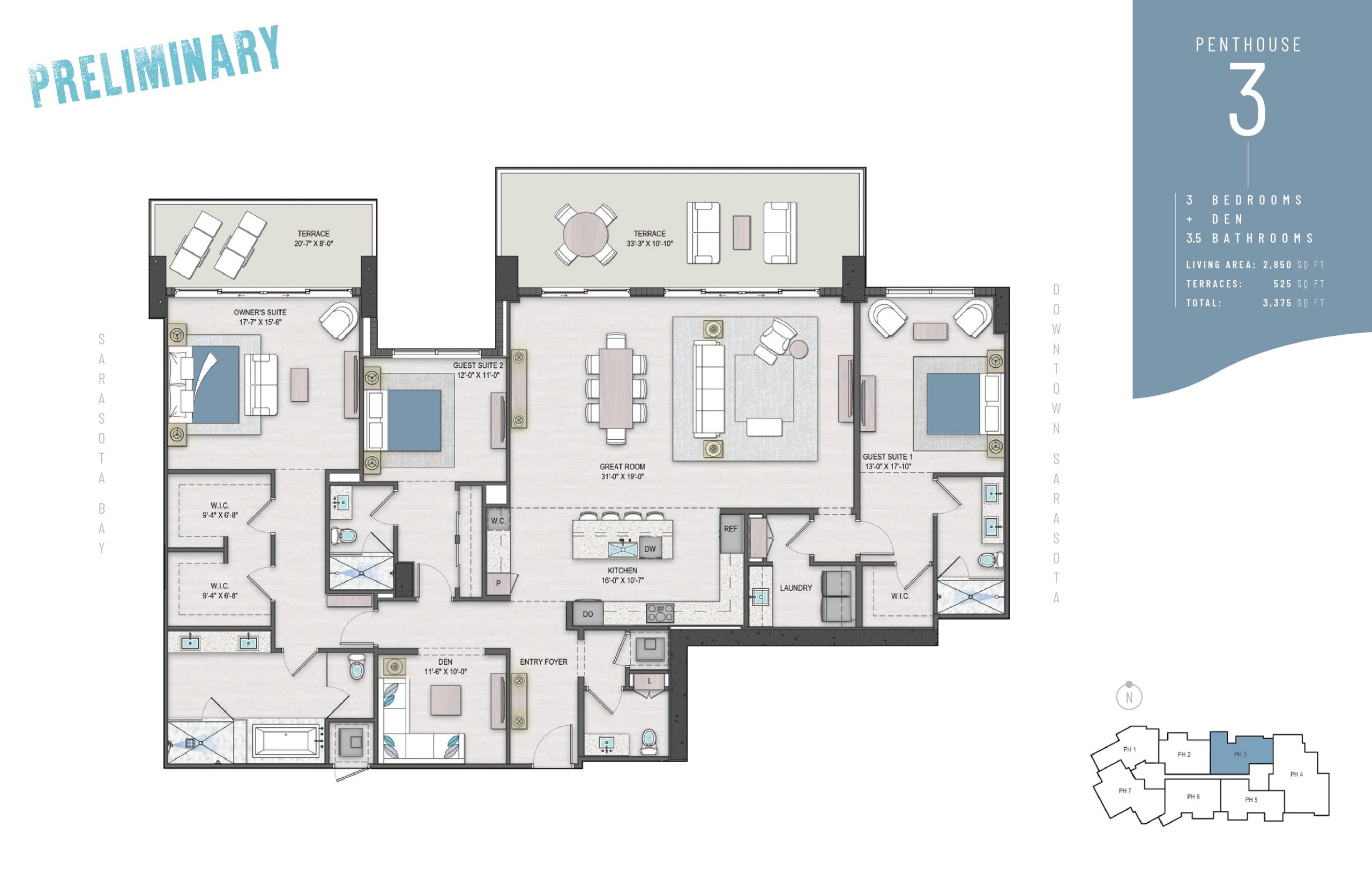 Bayso Sarasota unveiled penthouse floorplans for their 18-level condominium tower that is currently under construction in the Quay waterfront district in downtown Sarasota.