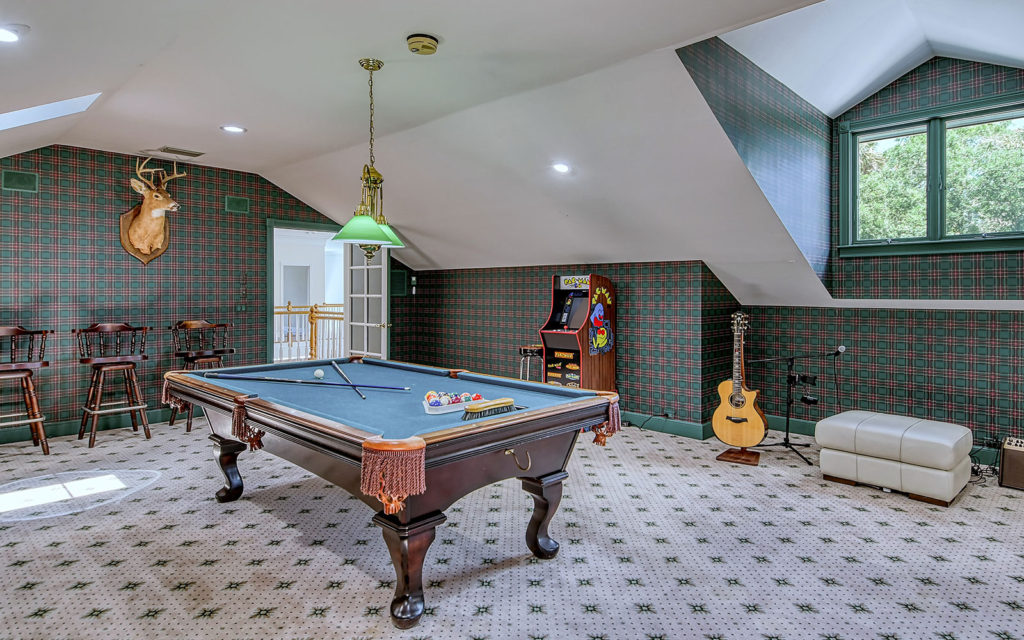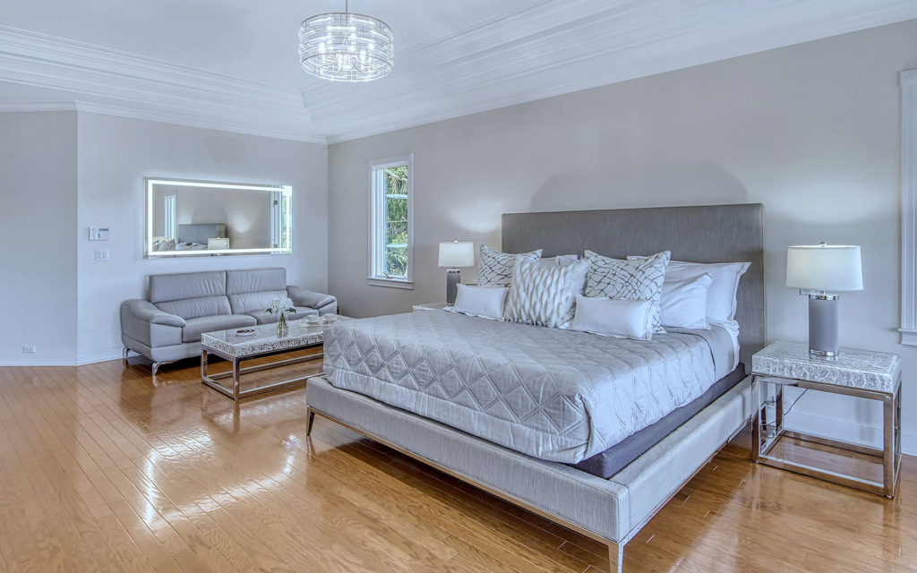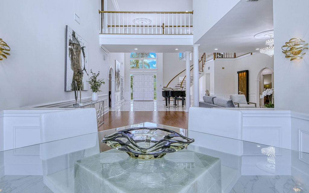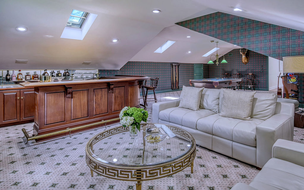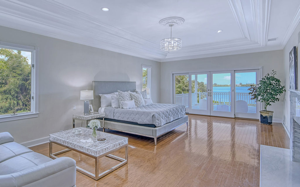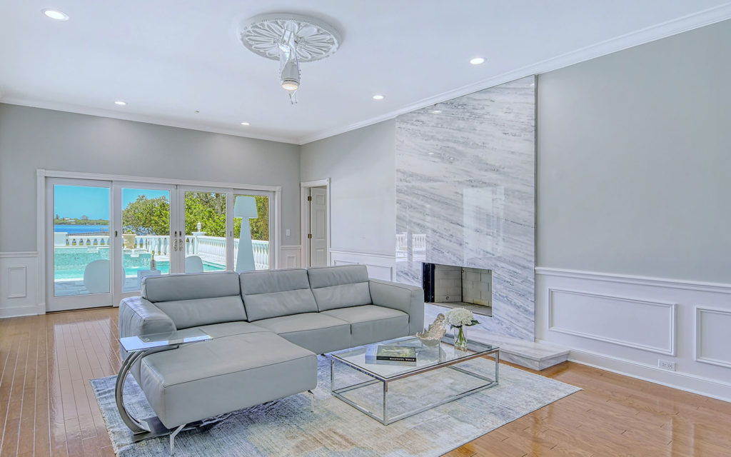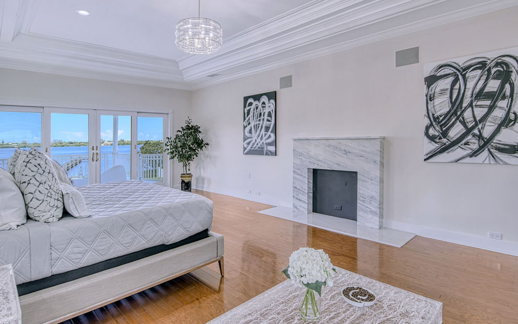 The grand foyer has 20-foot ceiling and a commanding view of the sun sparkling on the wide-open bayfront. The expansive floor plan features a glass-filled rear elevation where every major living area captures Sarasota’s abundant sunlight and coastal seascape. A wide variety of gathering areas include formal living room, “royal” dining room, family dining, family lounge and “Cheers”-inspired recreation room. There is also a home office with adjoining personal gym. The exquisite kitchen delights the inner gourmet with top-of-the-line appliances, new-release high-end Sub-Zero stainless steel dual-zone 146-wine-bottle refrigerator, large multi-purpose island and impressive bay view. The second floor is set aside as the family’s private retreat with sumptuous master suite, plus three additional bedrooms and two baths. Also upstairs is the “Cheers” game room featuring a solid-wood curved bar with brass foot rail and billiards area with table, light and cue rack.