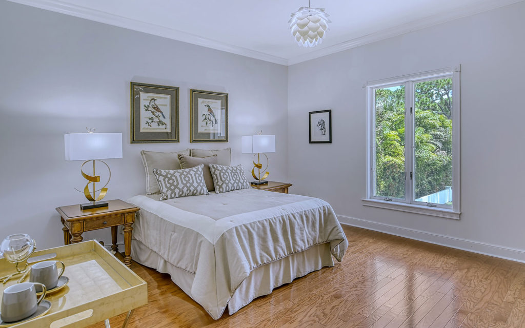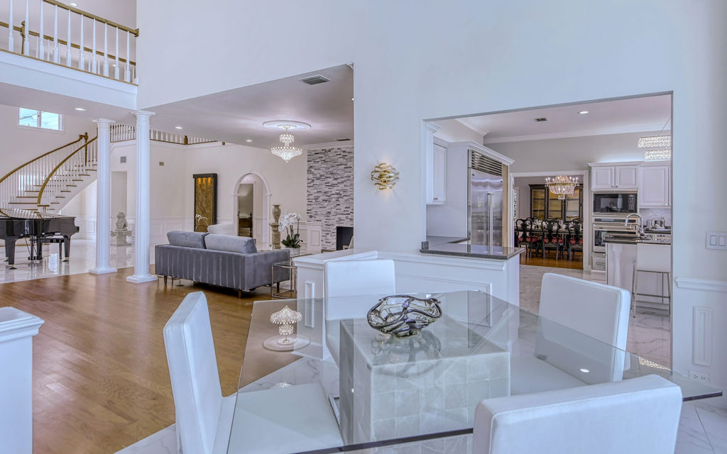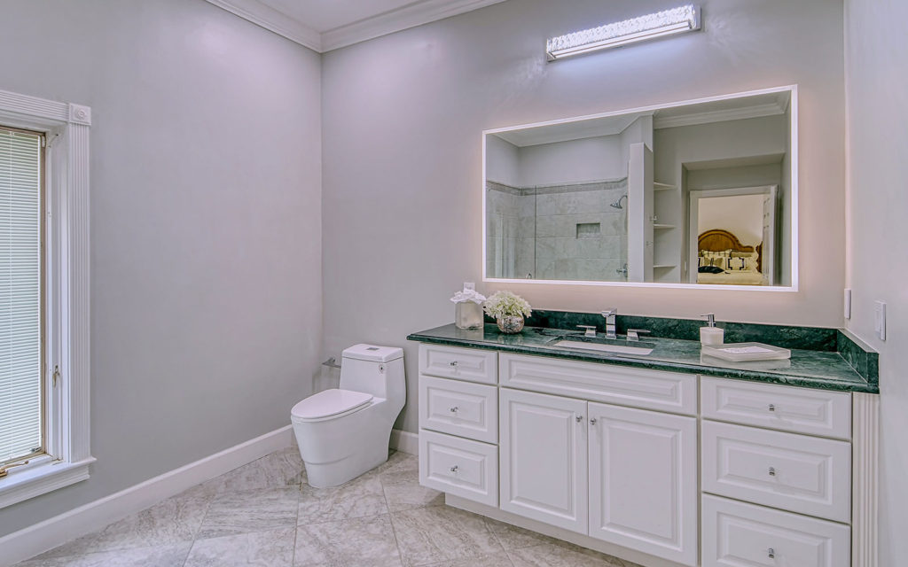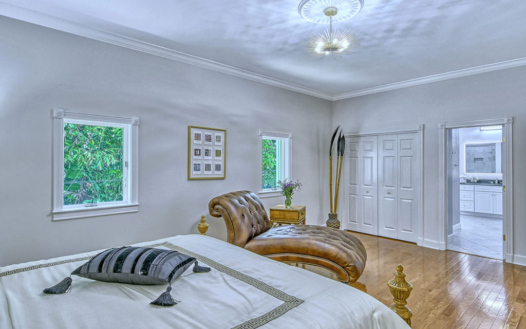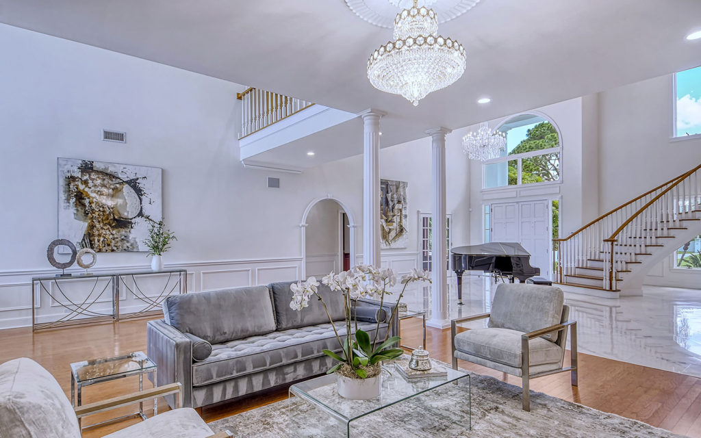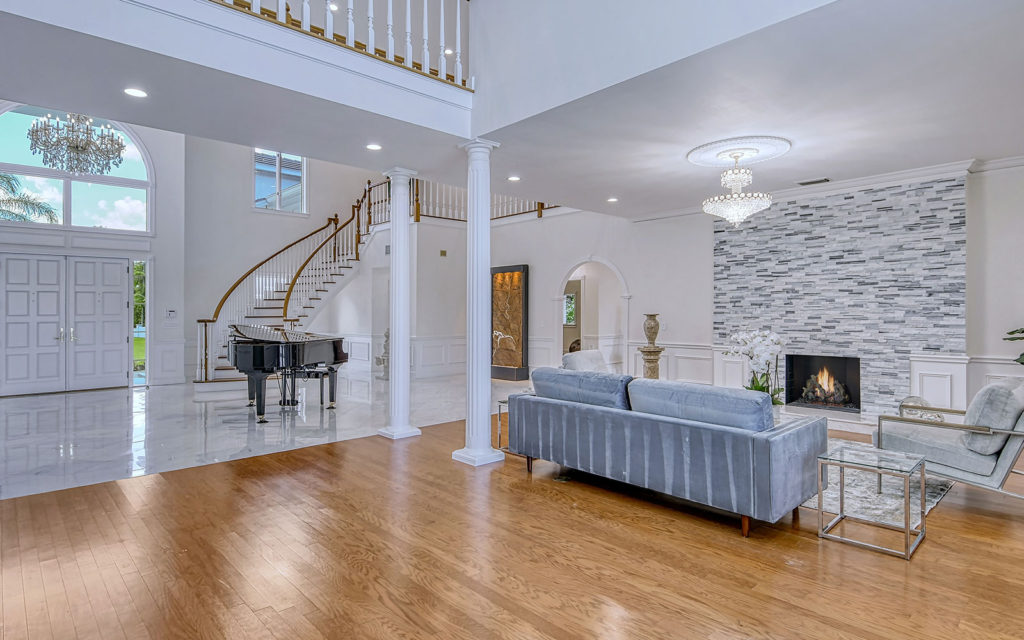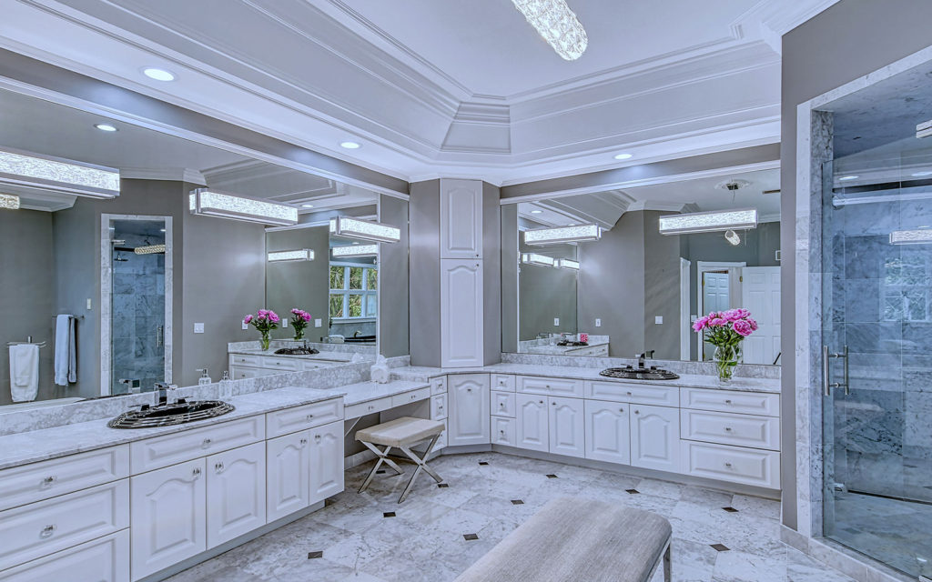 Inside, gentle arches, soaring ceilings, intricate woodwork and Schonbek crystal lighting attest to the home’s impressive nuances. Substantial upgrades in the last year include kitchen remodel including 150-bottle SubZero DualZone wine storage, stainless steel knobs/pulls and ice marble backsplash; new Euro-Wall sliding glass doors with arched transom in breakfast room; Schonbek light fixtures throughout; LED recessed ceiling lights inside and out; LED lights in light fixtures; 13×13 Emser tile in kitchen and breakfast room; three full-bath remodels; 9-ft. marble fireplace surround in family room; marble fireplace mantel in primary bedroom; pool renewed with PebbleTek surface, salt-water system, glass Emser tile and underwater LED lights; new landscape and irrigation; custom automatic entry gate with new motor, entry pad and WiFi remote control; environmentally-friendly LED dock lights; 1300W dual-fuel generator with two propane tanks; and more.