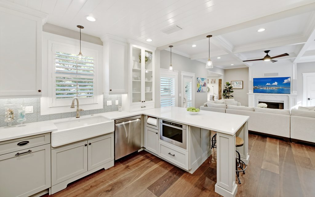 The 3,136 square-foot residence has five bedrooms, three baths, formal living room, formal dining room and open kitchen/family room/office. The stunning kitchen has solid-wood cabinetry, oversize farmhouse sink, eat-in counter and high-end appliances. The family room features a gas fireplace and flows easily to the covered lanai. The master suite is on the ground floor and features walk-in closet and ensuite bath. The rest of the bedrooms and baths are on the second floor along with a secondary laundry closet.