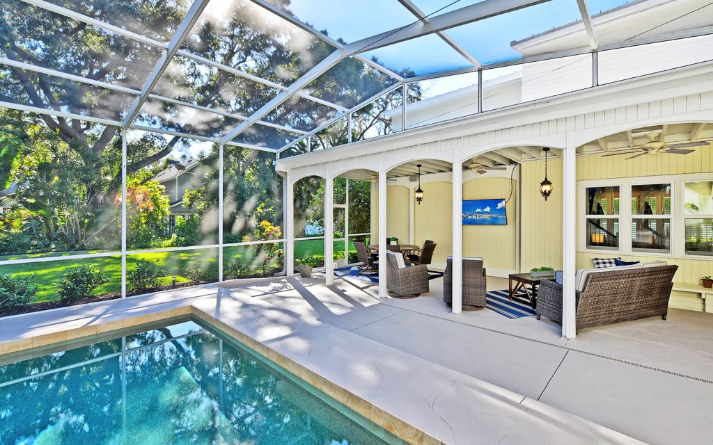 Outdoor living is easy inside the screened-in pool area and covered lanai. The large yard features privacy landscape, mature oak trees and irrigation on well. Located in one of Sarasota’s most coveted neighborhoods just minutes to Southside Village, Sarasota Memorial Hospital, Downtown Sarasota and beaches.