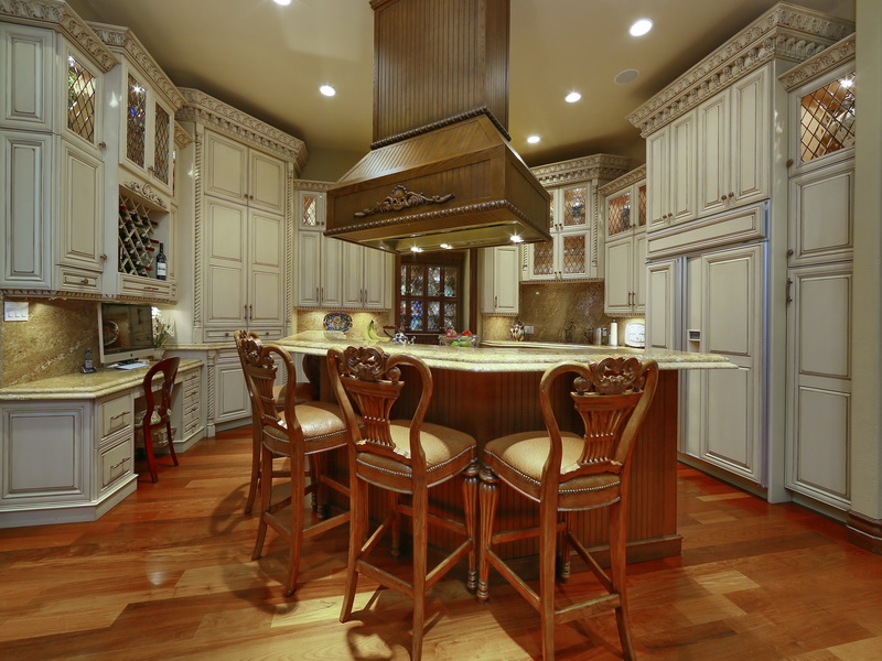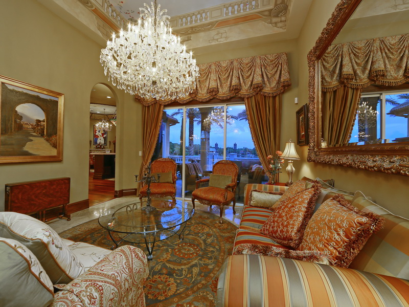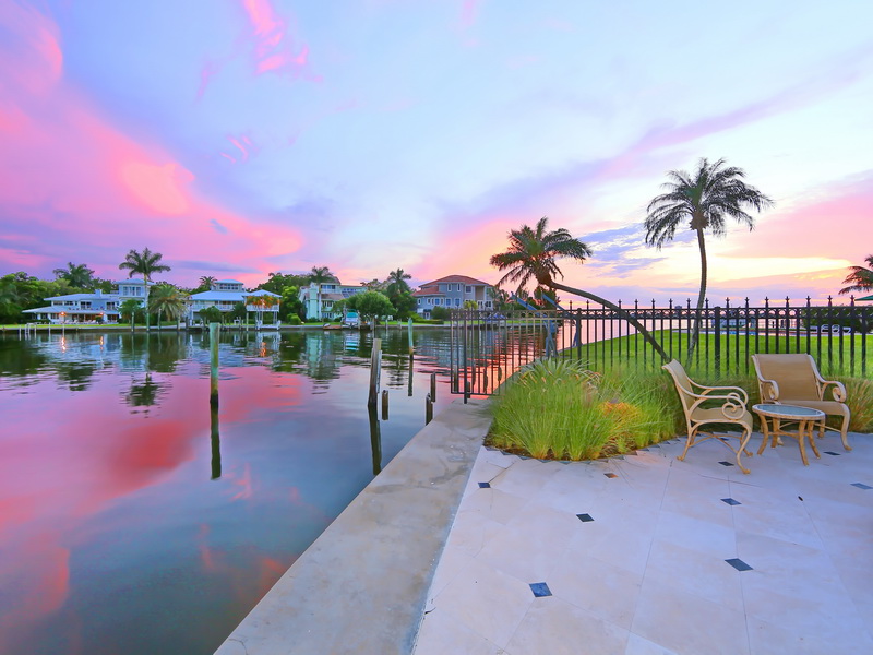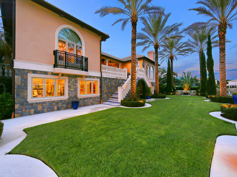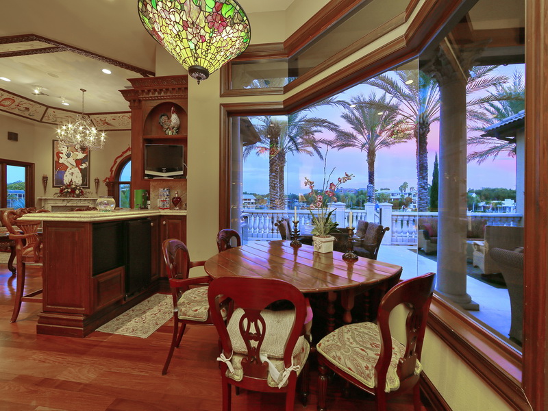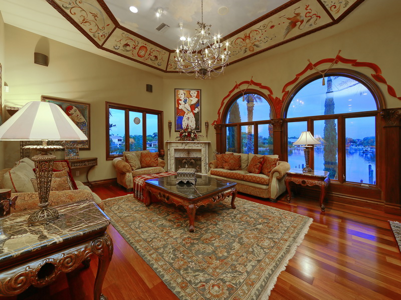 This Italian-inspired waterfront home in Harbor Acres is a boater’s paradise with 170 feet on the harbor, deep sailboat water and a custom oversized teak dock capable of docking a 100-foot yacht. It has two lifts and room for other boats or personal watercraft. Completely rebuilt from 2006 to 2008, no expense was spared in designing this distinctive family home, from the selection of one-of-a-kind quality materials and finishes from Europe and America, to the use of local and french artists to create several spectacular trompe l’oeil.
