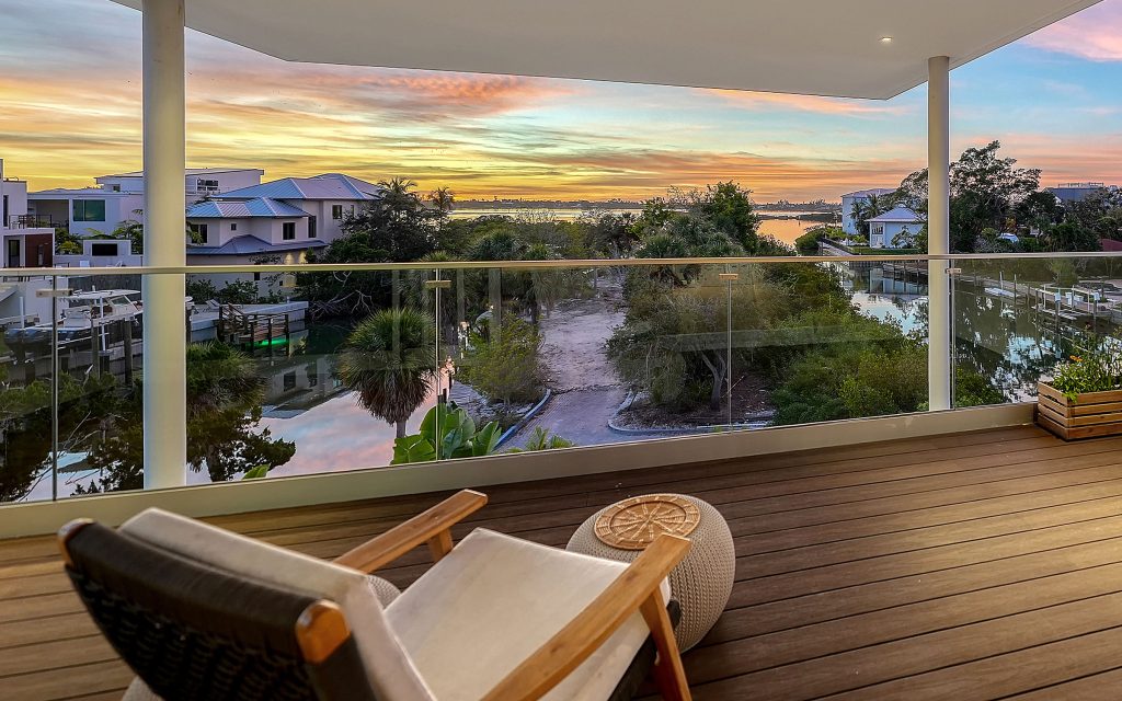 The West of Trail address places you close to the best of Sarasota. The Field Club is within walking distance, Publix is one mile away, Sarasota Memorial Hospital is only two miles north, Downtown Sarasota is about three miles, and Siesta Key Beach, with its world-famous white quartz sand, is only five miles from your door. A unique, modern, coastal home with gated privacy, waterfront access and everyday convenience in one of Sarasota’s most desirable neighborhoods.