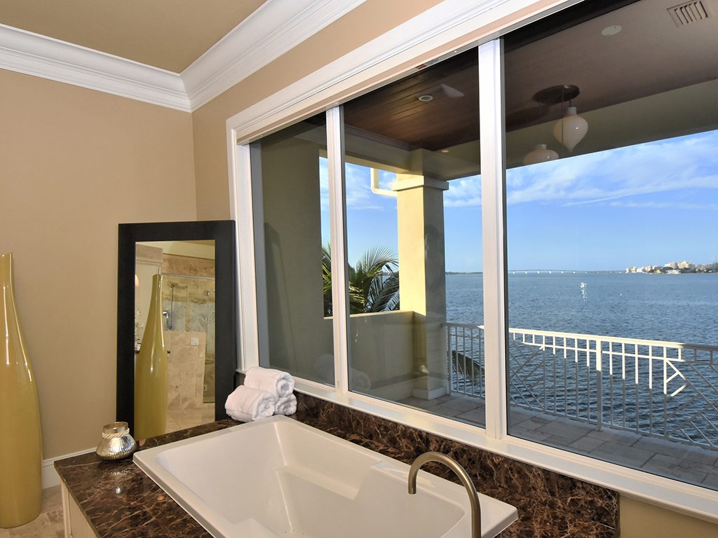 Enjoy amazing views of Sarasota Bay, the Ringling Bridge and the downtown Sarasota skyline from every living space in this extremely well-built, three-story, custom, bayfront home. All three floors feature fantastic amenities with elevator access to each level.