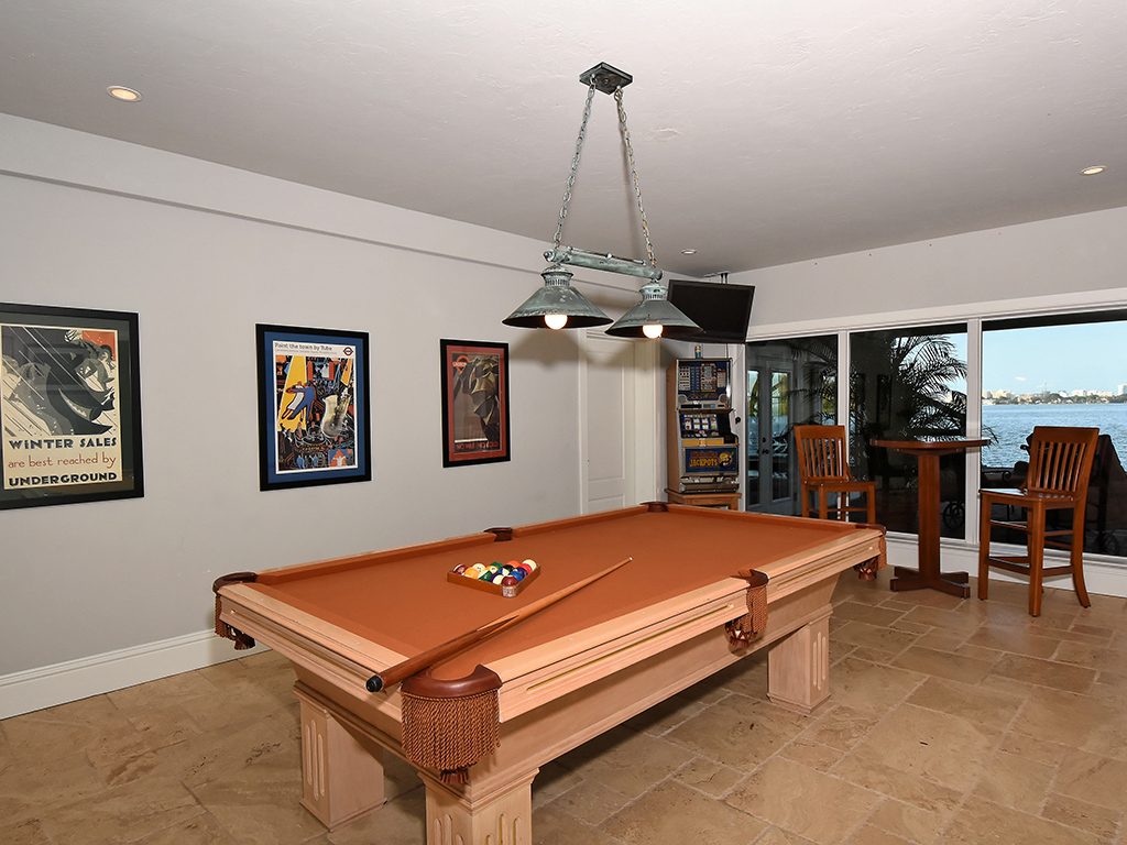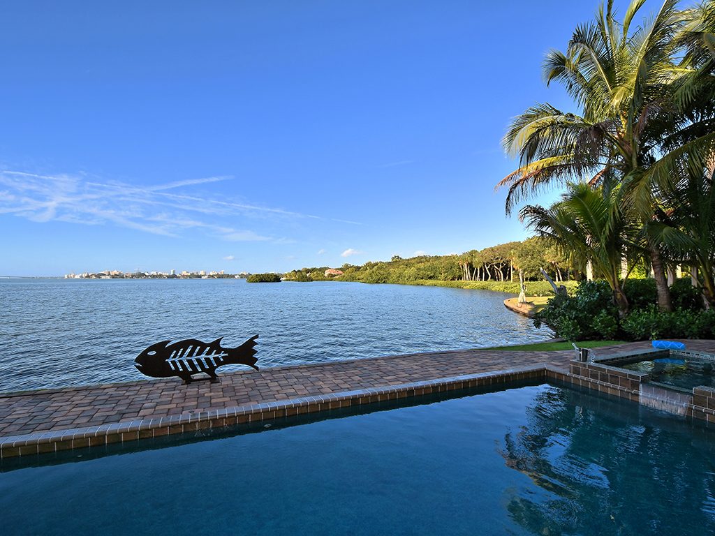 Ride the elevator down to the first floor for a workout in your exercise room, challenge your friends and family to a game of billiards in the large game room. then dive into your waterfront pool to cool off and relax in your heated spa. The ground-floor covered lanai space features multiple seating areas for entertaining guests and an outdoor kitchen to grill your fresh catch of the day. Davits on the seawall are ideal for jet skis, a jet boat or skiff. Perfect for paddle boarding, kayaking or canoeing. Dual two-car garages to house your toys, and just ten minutes from your gate you can enjoy a day at Siesta Beach or all that Downtown Sarasota has to offer.