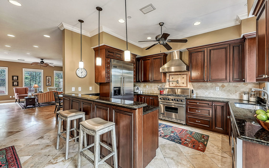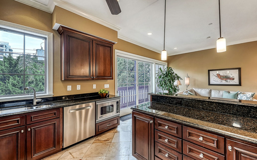 This particular residence is the envy of the community with its prime location kitty-corner from the pool and a spacious 368 sq. ft. private terrace from which to enjoy the serene environment. Inside, high ceilings, oversize windows and ultra-quiet sound proofing create a congenial ambiance for soulful living. Luxury appointments include natural stone and wood flooring, solid-core 8-ft. doors, Anderson impact-resistant solar-tinted windows, wood cabinetry with granite countertops, decorative base and crown molding, and natural gas fireplace. The well-designed interior lives large with living room, dining room, family room, powder room and kitchen on the first floor, and three bedrooms and two baths on the second floor. The high-end kitchen features Viking Professional appliances, pot filler, eat-in counter, walk-in pantry, and plenty of storage and counter space. All bedrooms connect to the outdoors via private balconies. Community amenities include heated pool and spa, lush gardens, gathering area with fire pit, stone walkways, statuary, central fountain and enclosed garage with personal storage area.