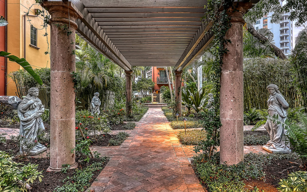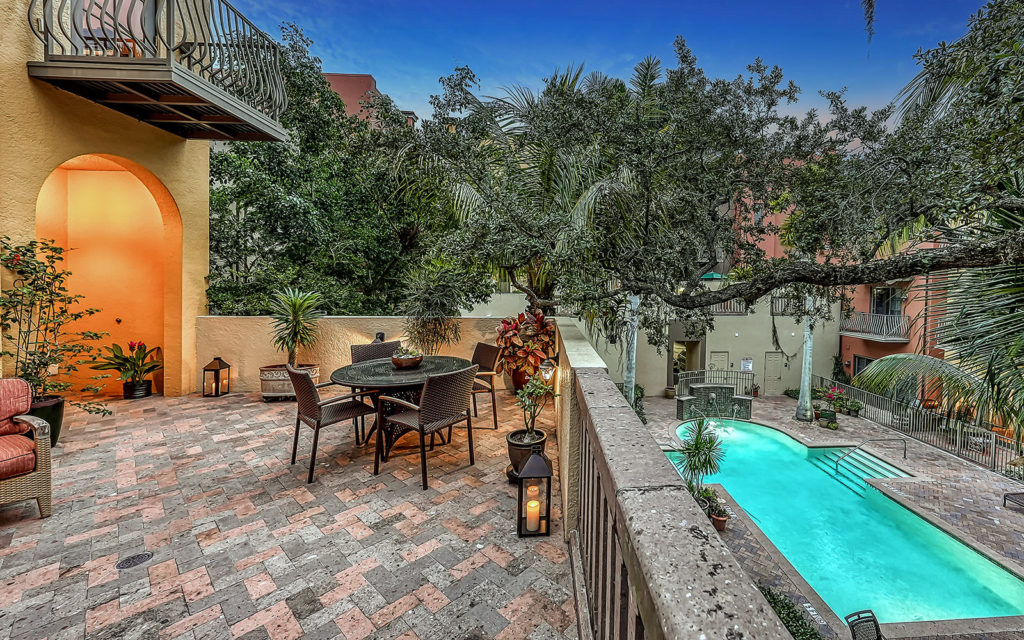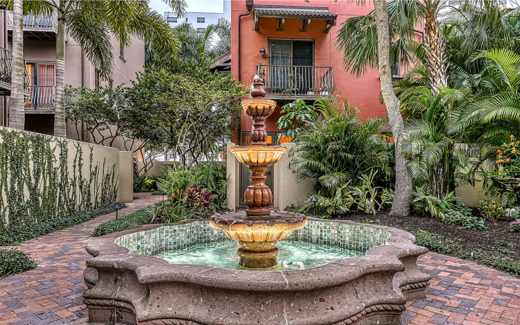 Rarely available residence in Burns Court Villas, an exclusive garden courtyard sanctuary in Downtown Sarasota’s eclectic urban environment. Walk to charming cafes, five-star dining, inspired galleries and unique boutiques. And just inside the gate, a flowing fountain, lush plantings and old-world statuary welcome you home.