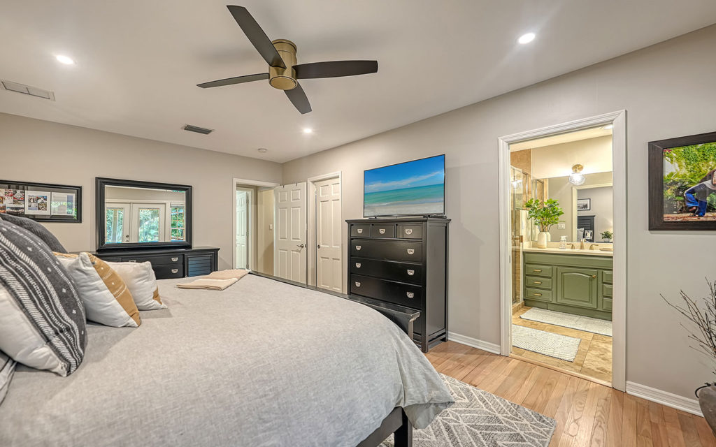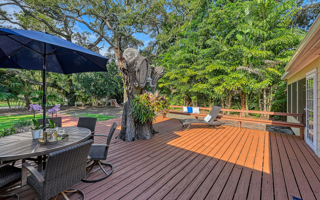 Soft contemporary colors and casual style fit easily into the comfort and flow of your Florida lifestyle. Offering 2,764 sq. ft. of living space, this residence features three bedrooms, three-and-a-half baths, living room, dining room, family room and study nook. The stunning kitchen is a cook’s delight with solid-wood cabinets, granite countertops, stainless appliances including induction range, and closet pantry with built-in shelves. 2022 improvements include new appliances, new lighting and plumbing fixtures, interior paint, refinished wood floors, powder bath remodel and new well pump. Recent improvements also include new roof in 2017 and new A/C in 2016. Outside, the large yard features an open deck, mature oak trees and irrigation on well.