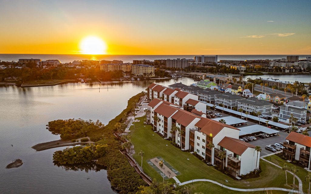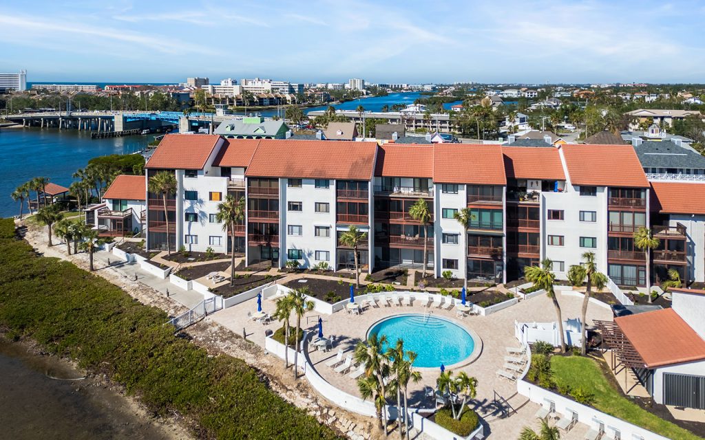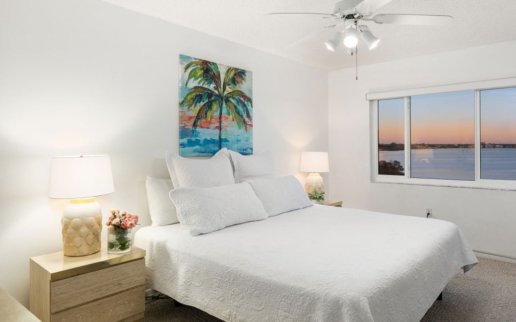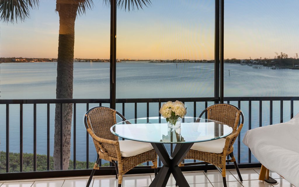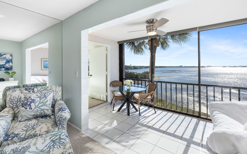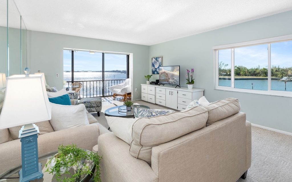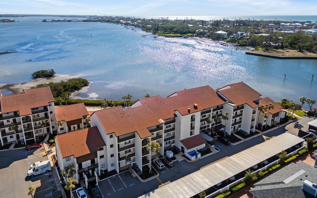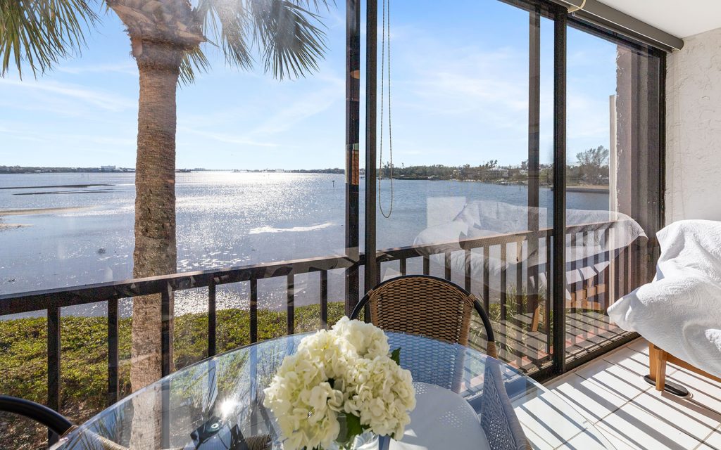 Relaxing on the balcony of this Sarasota waterfront residence makes you feel as if you are floating on water. Enjoy breathtaking panoramic water views as boats pass by, dolphins play and sunsets light up the sky. This cozy, bright and cheery condo is located at the gateway to world-famous Siesta Key in Sarasota, Florida. This third-floor end-unit is unique in that it has a coveted, west-facing, oversize window with full views of the Intracoastal Waterway. Coastal living is super convenient with the beach, marina, boat rentals, watersport excursions, fishing charters, and a wide variety of shops and restaurants within walking distance.