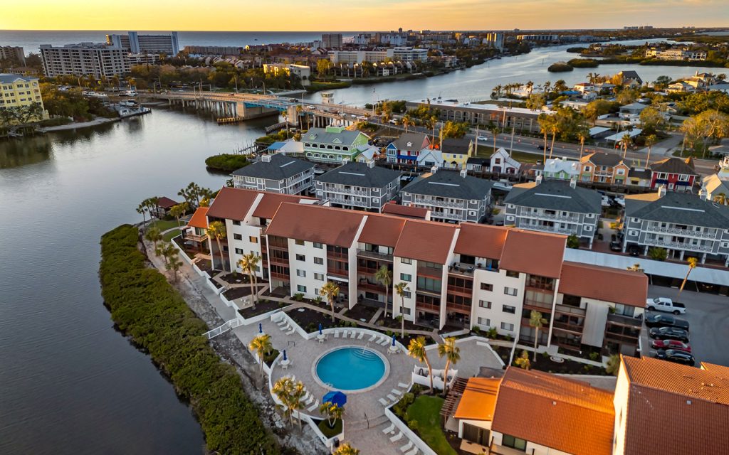 Castel del Mare is an 8-acre bayfront community with two swimming pools, one tennis court with two pickleball courts, fishing pier, kayak storage, clubhouse and fishing pier. The location can’t be beat — on the mainland with easy access to all that Sarasota has to offer combined with the charm and grace of waterfront living. Here is the place to settle in, have fun and relax.