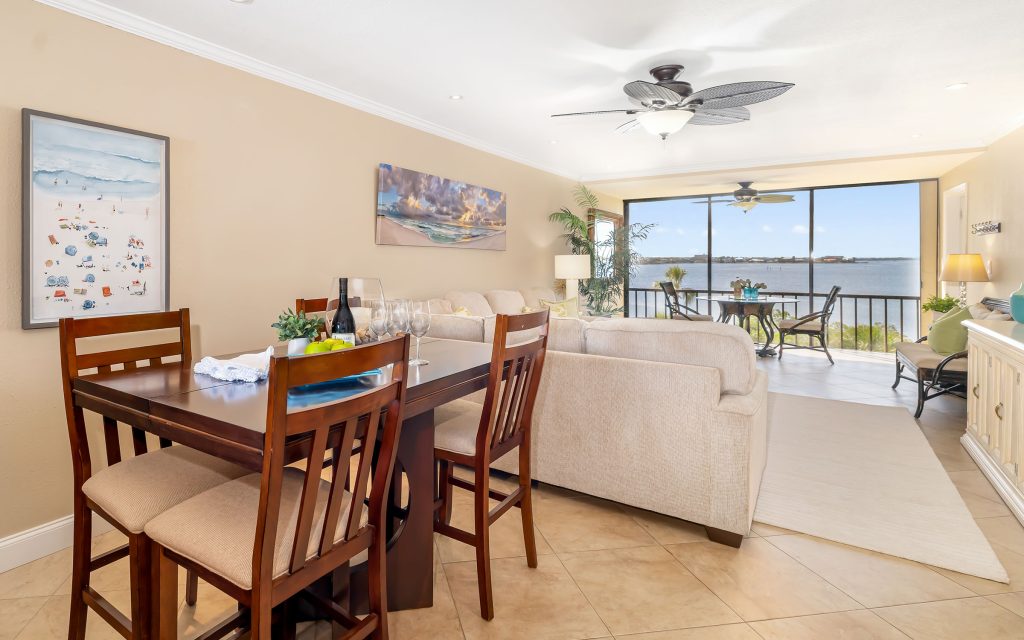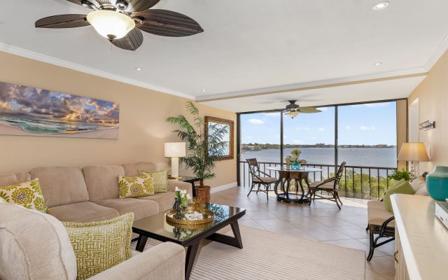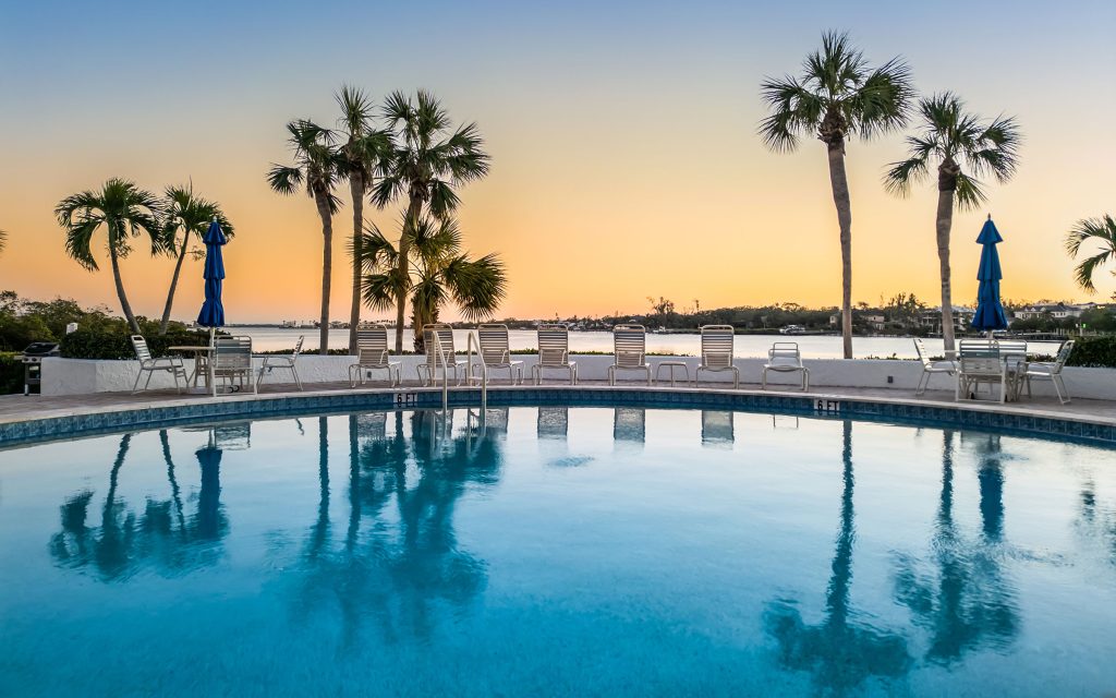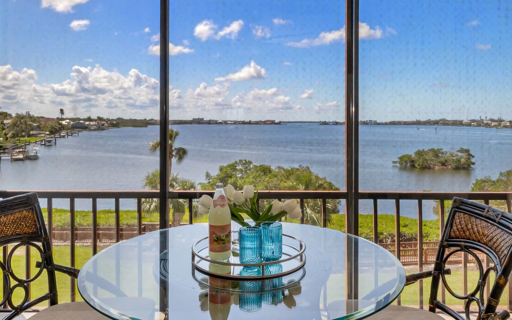 Perched on the third floor with views of Intracoastal Waterway, this two-bedroom, two-bath residence captures the essence of coastal living. Located just east of the Siesta Key south bridge, Castel del Mare offers convenient walkability to the Boatyard’s waterfront dining and shops, along with easy access to the sugar-white sands of Siesta Key.