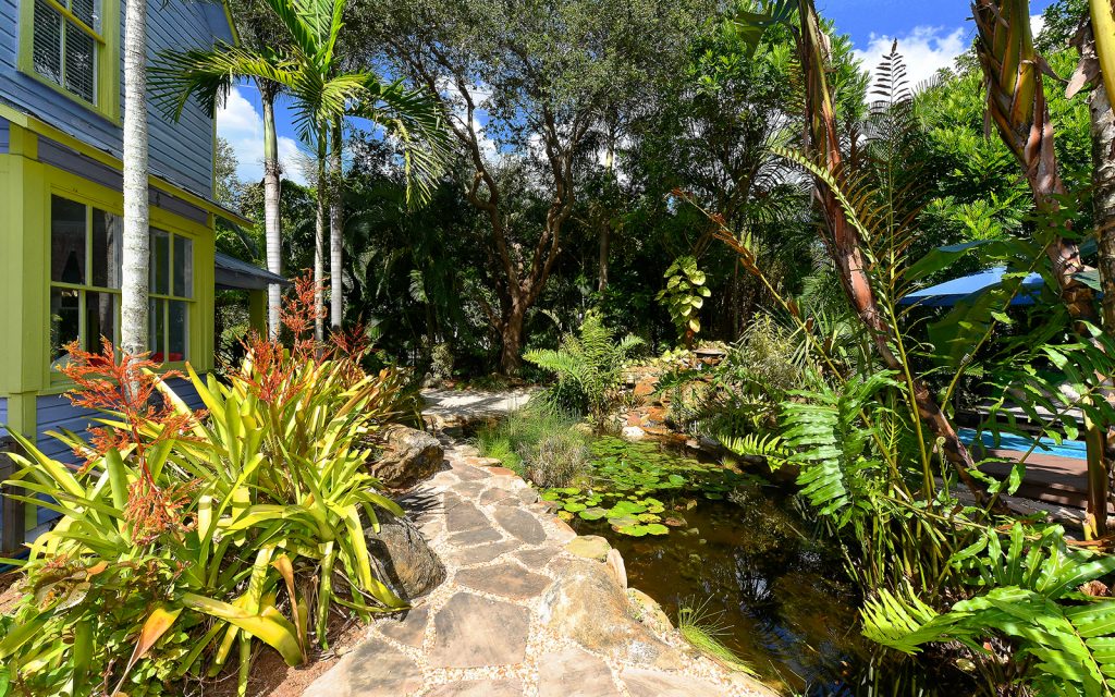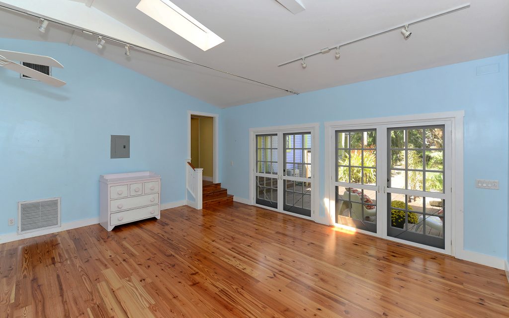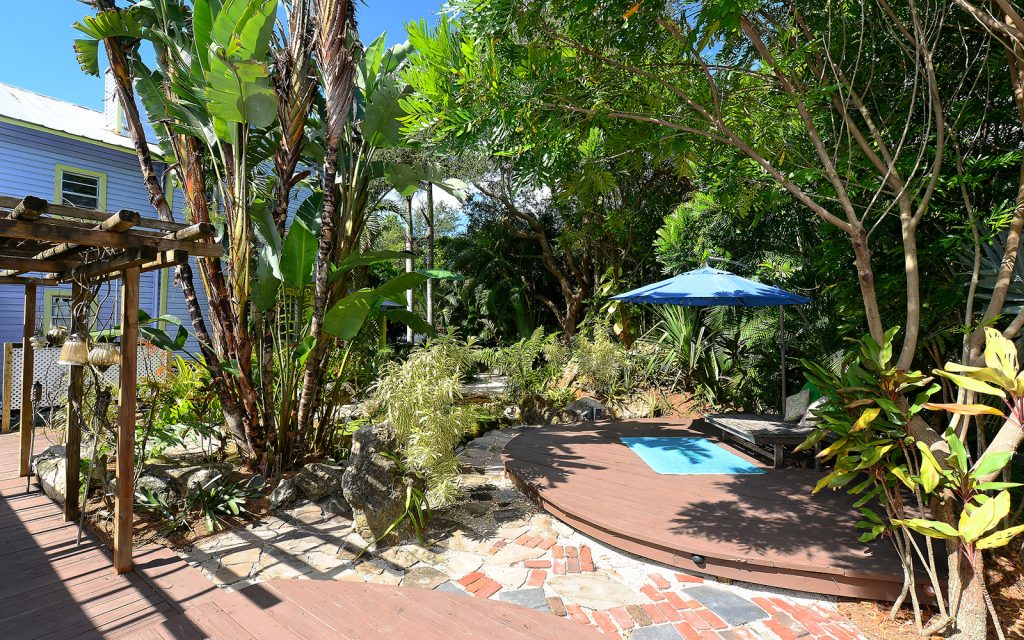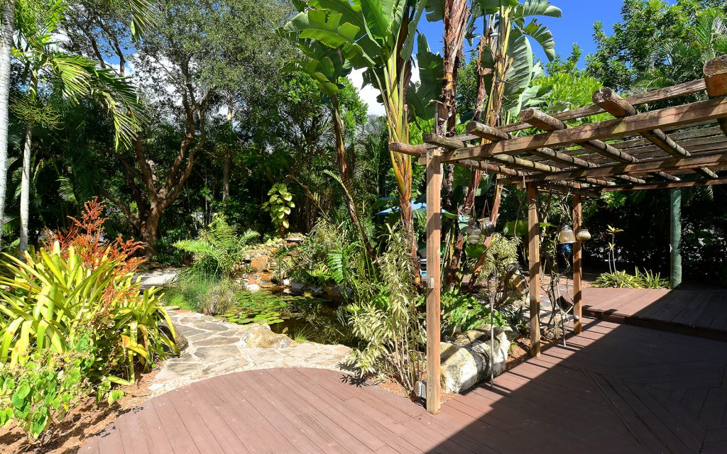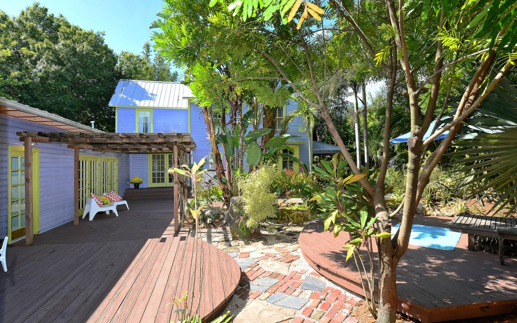 What was once a detached studio has been cleverly connected to the main house creating two huge spaces for education, recreation, in-law apartment, or perhaps an artist studio. Three sets of double French doors lead to the lush and tranquil outdoor gardens. Sit under the pergola as you listen to the sounds of the waterfall dance upon the stones. Surrounded by greenery, abundant porch space, both screened and open, this hidden oasis sits on a corner lot in one of Sarasota’s most desirable neighborhoods.