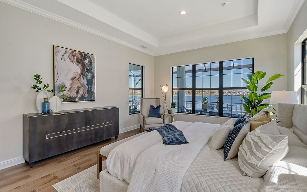Brand new, move-in ready, custom luxury home on the Manatee River. Centrally located in Sanctuary Cove close to all the lifestyle amenities in Bradenton, Lakewood Ranch, Sarasota, Anna Maria Island, St. Petersburg and Tampa, and just one mile to the brand-new full-service Marriott Resort, Spa and Beach Club and the Bradenton Area Convention Center. Fill your days with your heart’s desire of fun activities — boating, shopping, golfing, dining, travel, fitness and the outdoors, and come home to extreme privacy within a gated community on a cul-de-sac street of high-end custom homes. This exquisite residence is on the protected private fresh-water harbor in the exclusive Water’s Edge section of Sanctuary Cove, surrounded by water, bird sanctuaries and a community beach. You have boating access to seven waterfront restaurants on the Manatee River as well as the day docks of the Bradenton River Walk which is rated as one of the top ten things to do in the area.