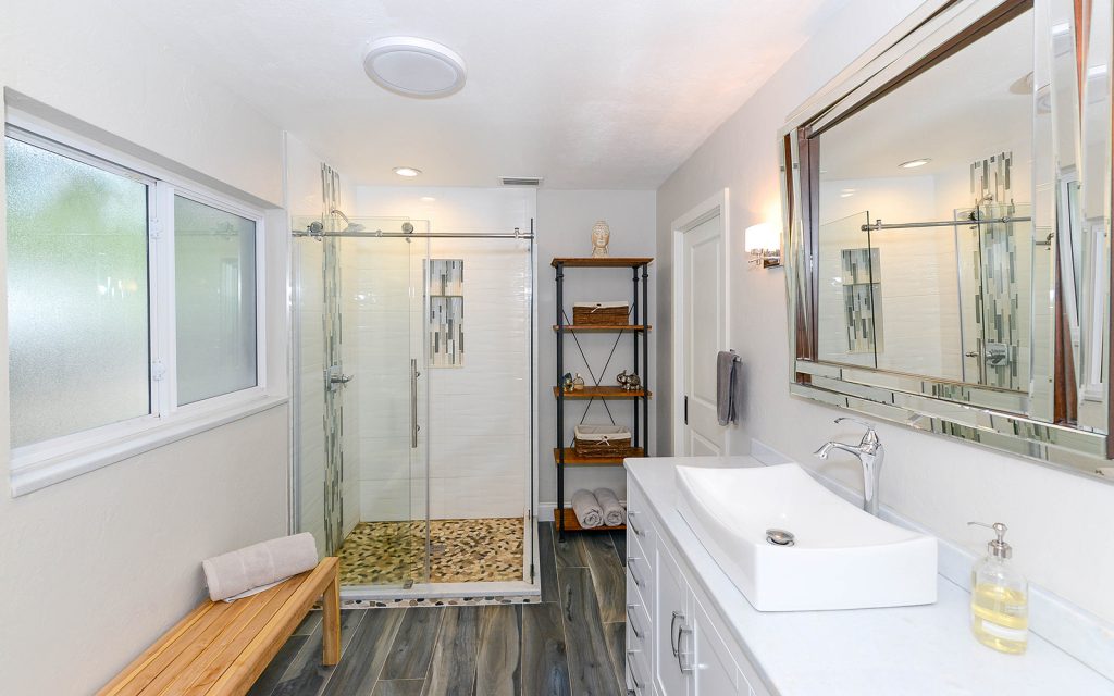 Beautifully remodeled home in the perfect Sarasota West of Trail location – walk to Southside Village and only one mile to downtown! A genuine gem in highly desirable Harbor Acres. Full of natural light and open living areas, this home has been completely updated and remodeled. Modern kitchen, new bathrooms, new A/C systems and ductwork, new roof and gutters, and new circular brick paver driveway with automatic gates.