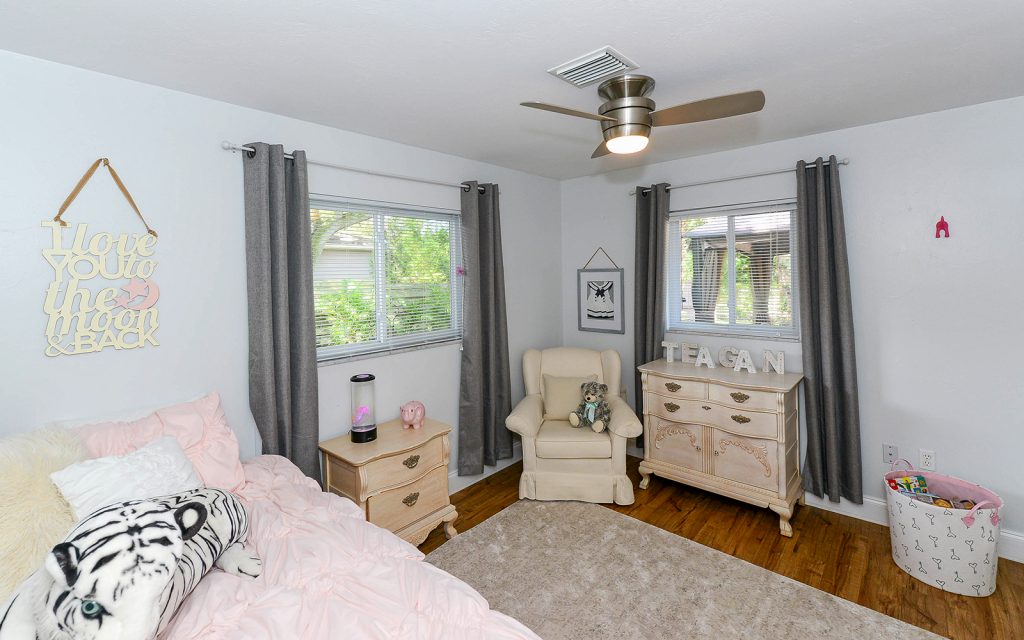 The split floorplan features 3 bedrooms, 3.5 baths, flex room and den/playroom. All 3 bedrooms have ensuite baths and provide all family members with private retreats. There’s a flex room off the master suite which can be used to indulge your passion, be it work, exercise, crafting, reading or yoga/meditation. The den/playroom leads to one of the bedroom suites and has a separate entrance at the front porch. Outside, enjoy the Florida lifestyle with a pool, open patio and lushly landscaped yard. The entire property is fanced and gated for security and privacy.