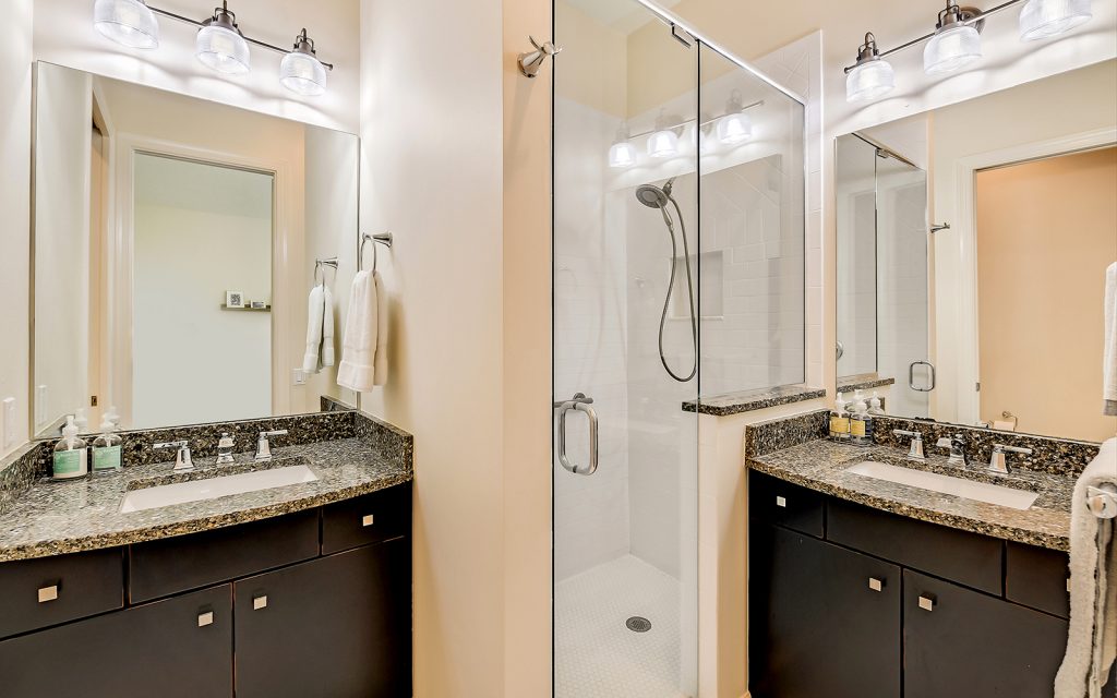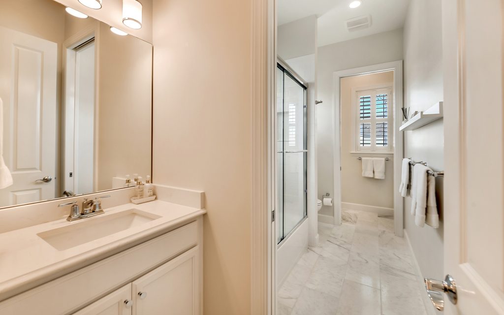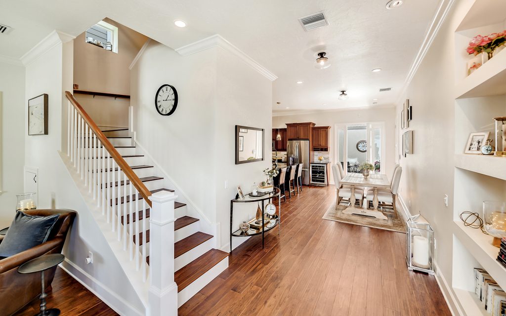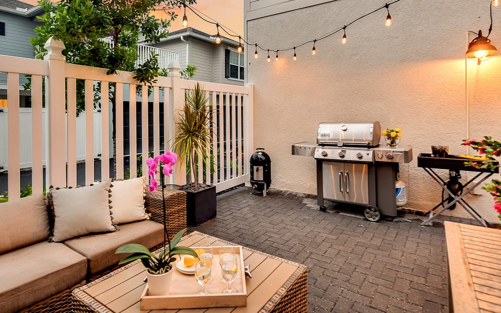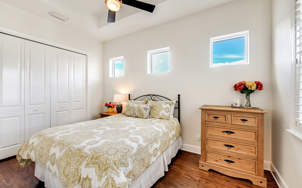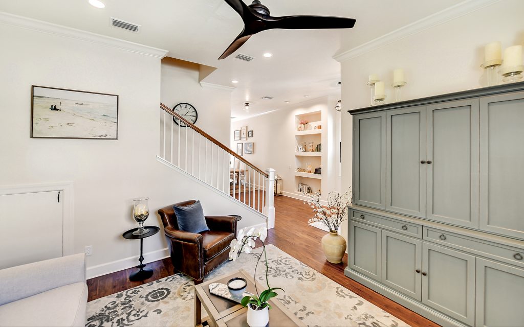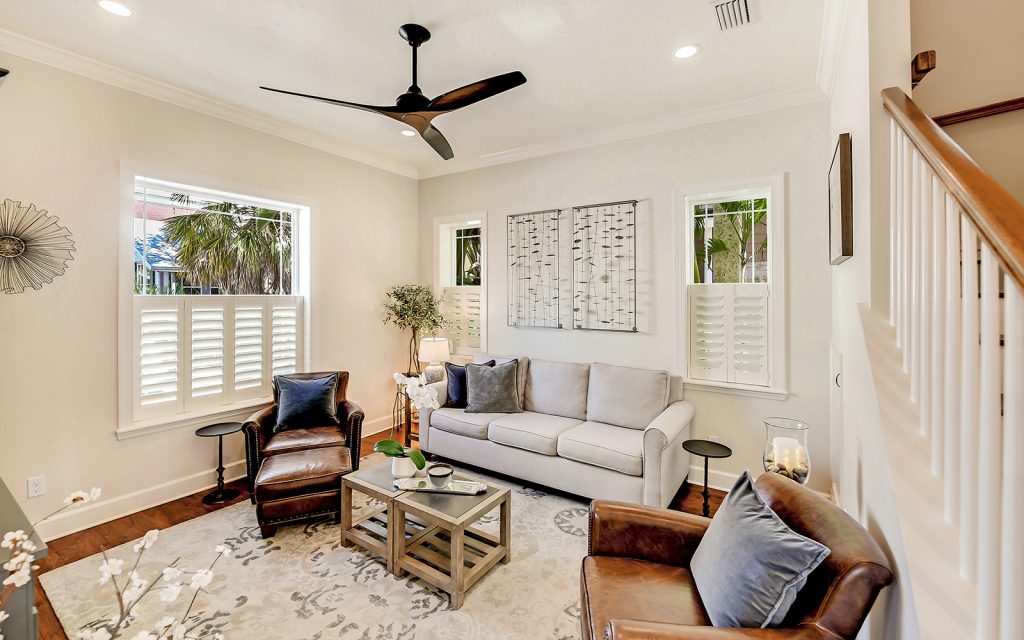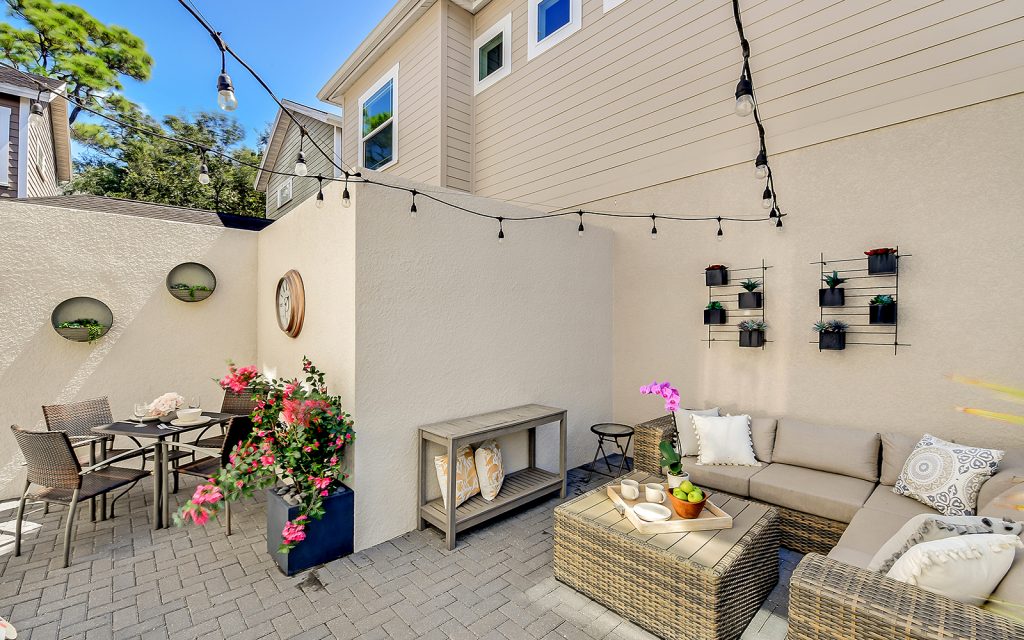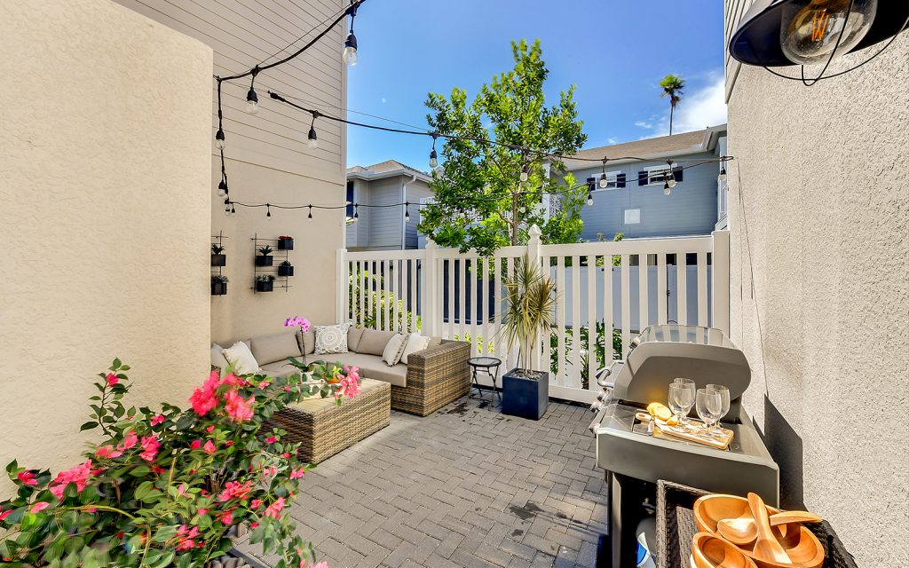 This two-story residence lives large with 1,945 sq. ft., 3 bedrooms, 2.5 baths, living room, dining room and ample kitchen. This home is being sold turnkey furnished – all items were purchased new in late 2018 to perfectly fit the spaces in the home. High-end finishes include engineered hardwood floors, 10-ft. ceilings, solid-wood cabinetry, quartz countertops, high-impact windows, Plantation shutters, and open outdoor patio. The generous kitchen features an eat-in counter, stainless steel appliances and plenty of counter space for prepping and cooking. The master suite has his and her walk-in closets with a center dressing island in hers. The ensuite master bath has two vanities, walk-in shower and water closet. The other two bedroom share a Jack-and-Jill-style bath. Outdoors, an open patio features a slatted fence for cross breeze ventilation.