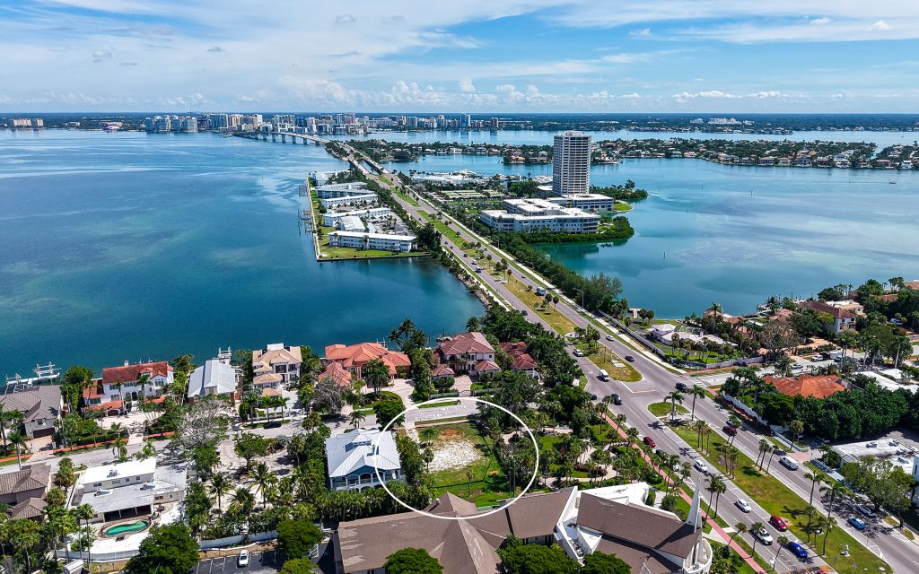 A distinctive St. Armands Key address is now available on this .26-acre homesite, an exceptional 75-ft. x 152-ft. lot on which to build the coastal home of your dreams. The lot to the north is a meditation garden and will not be built on. To imagine the possibilities, Mark Sultana of DSDG Architects designed a three-story, contemporary home featuring a roof deck with bay view suitable for this lot. The plans, although perfect for this lot, can be modified for your specifications. The proposed home design and floorplans are available for your review. The price offered is for the lot only.