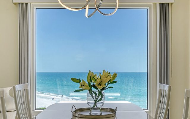The desirable southern exposure and glass-filled exterior of this seventh-floor residence embody the spirit of coastal living. Every room has an amazing view. The 1,468 sq. ft. floor plan has two bedrooms with ensuite baths, great room, dining room and kitchen with breakfast room. The bedrooms feature floor-to-ceiling windows. Outside, the wrap-around balcony is perfect for enjoying the captivating coastal location.