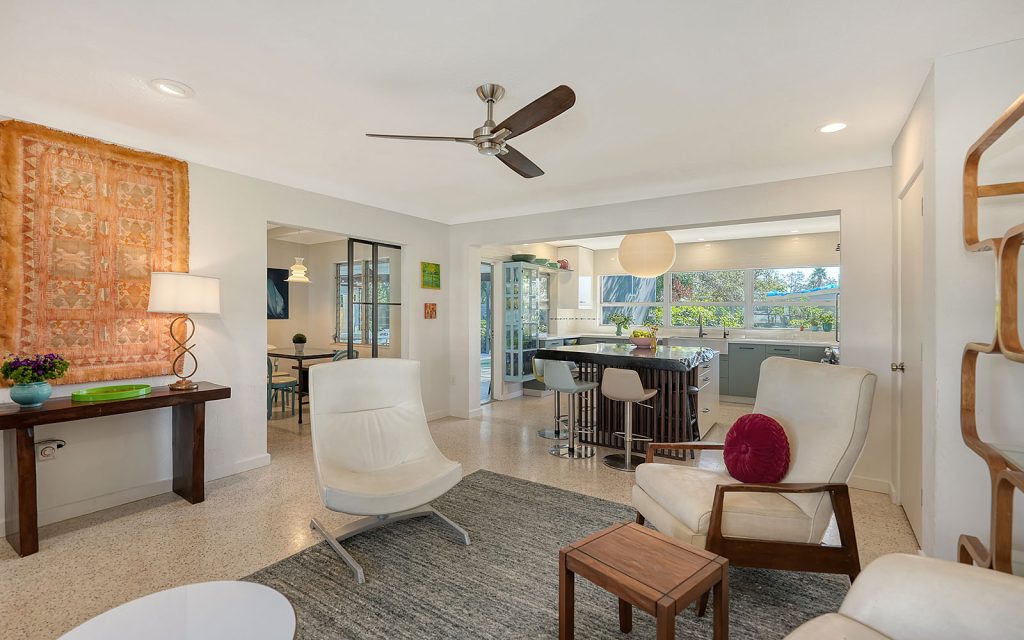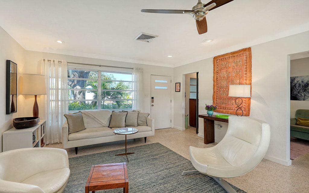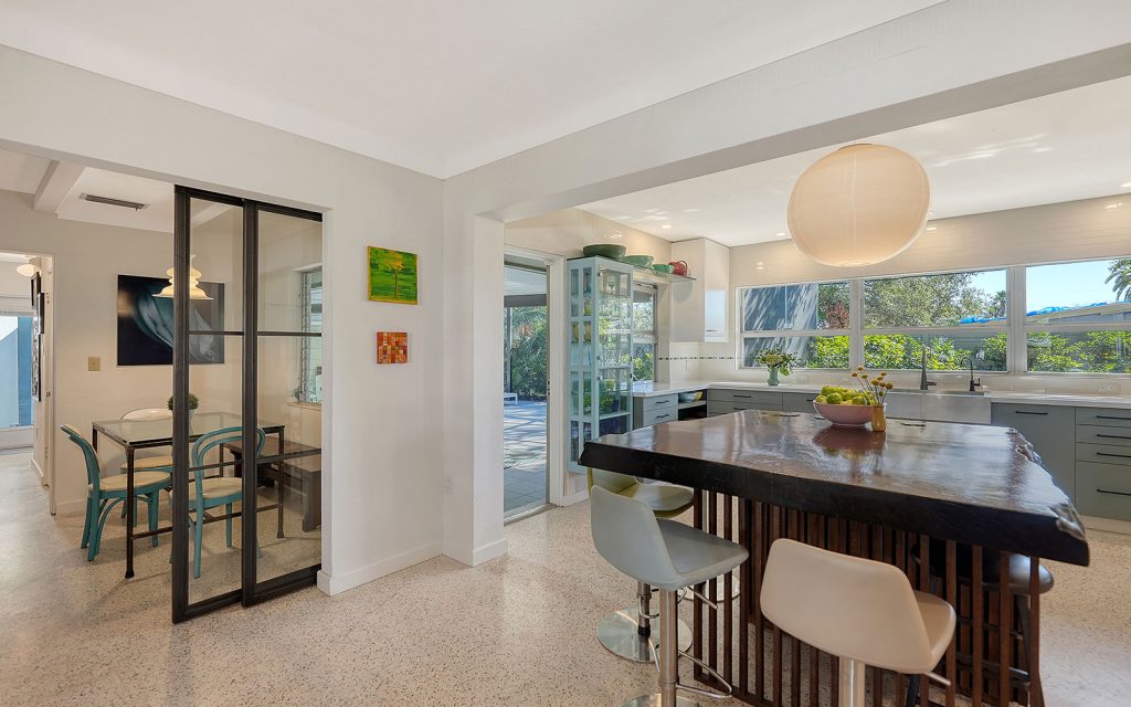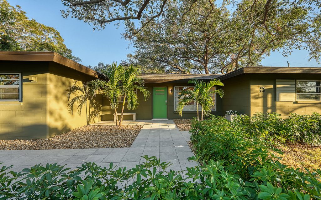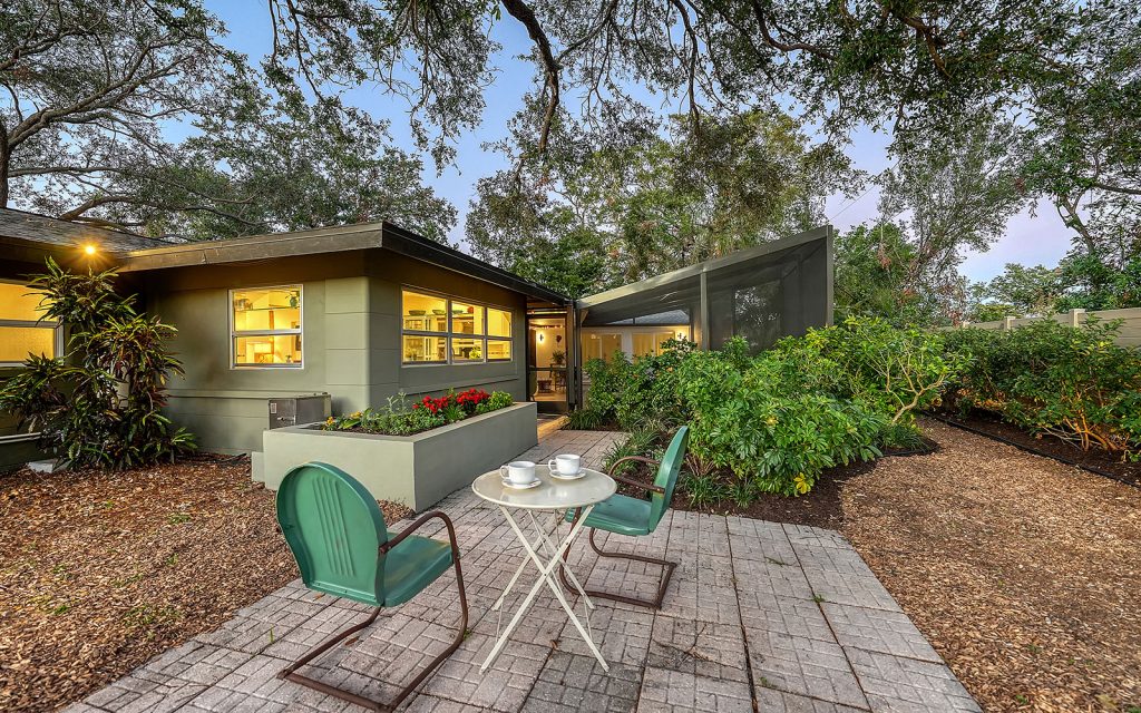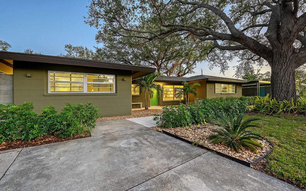 Discover the charm of this appealing mid-century modern luxury home located in Sarasota’s East of Trail’s Arlington Park neighborhood. Brimming with good vibrations, the clean lines and uncluttered spaces have a calming effect and blend well with today’s contemporary style. Nestled on a generous .24-acre lot, under a canopy of mature oaks, the 1,700 sq. ft. home features concrete block construction, terrazzo floors, lots of windows and multiple access points to the outdoors.