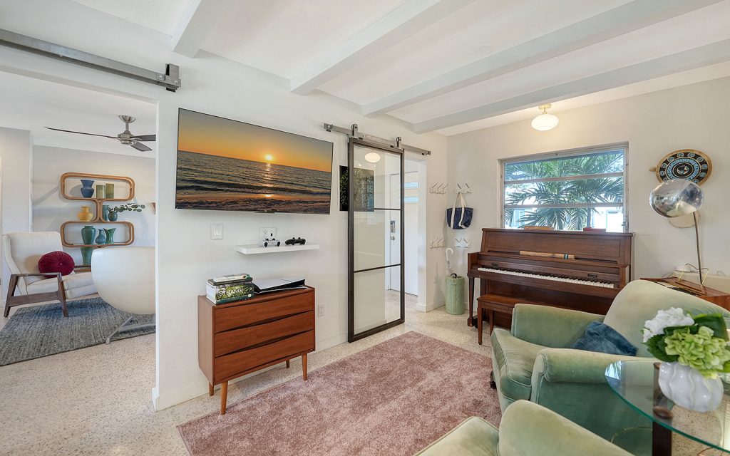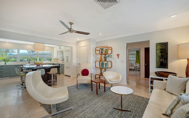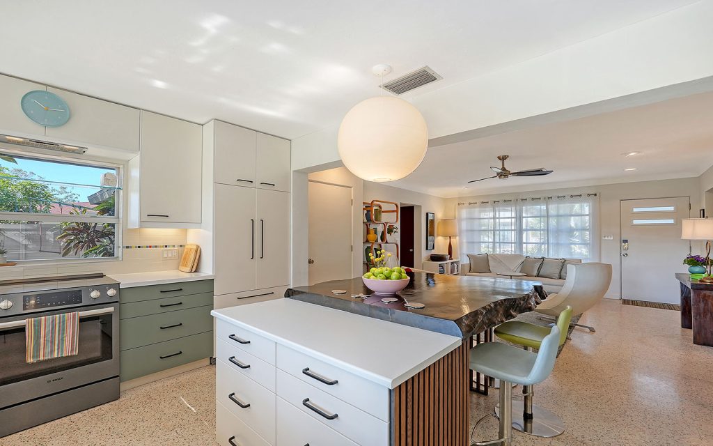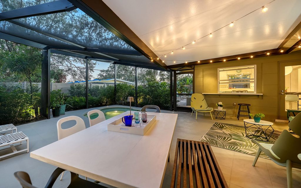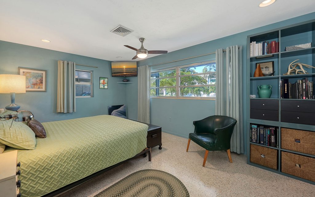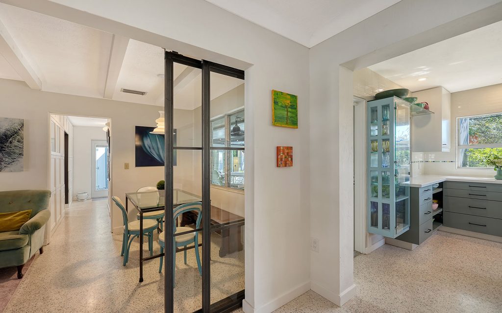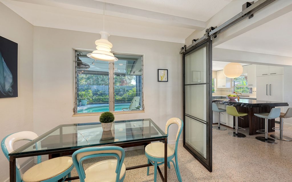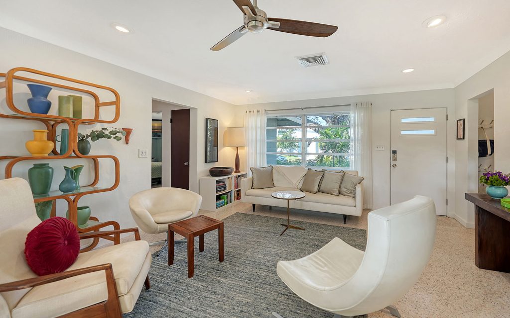 Discover the charm of this appealing mid-century modern luxury home located in Sarasota’s East of Trail’s Arlington Park neighborhood. Brimming with good vibrations, the clean lines and uncluttered spaces have a calming effect and blend well with today’s contemporary style. Nestled on a generous .24-acre lot, under a canopy of mature oaks, the 1,700 sq. ft. home features concrete block construction, terrazzo floors, lots of windows and multiple access points to the outdoors.