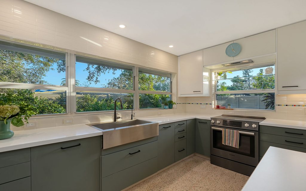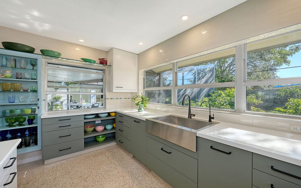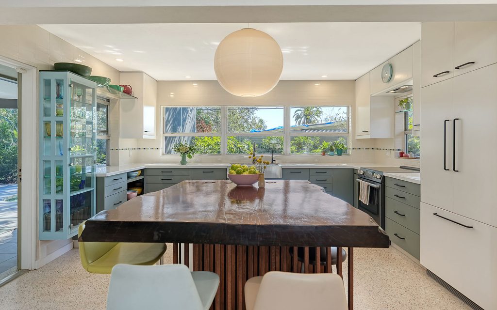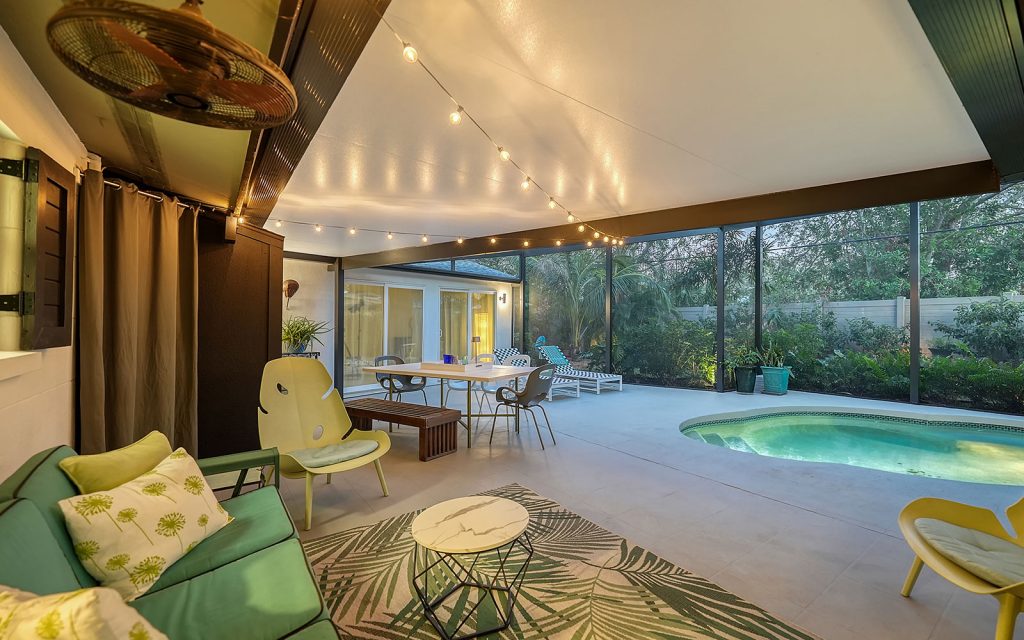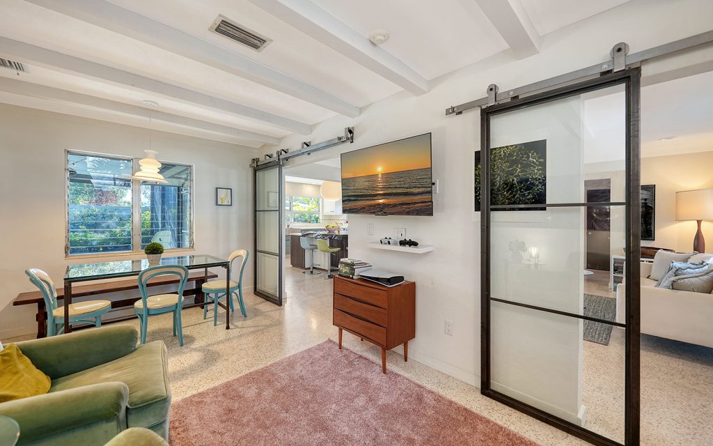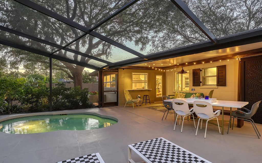 Discover the charm of this appealing mid-century modern luxury home located in Sarasota’s East of Trail’s Arlington Park neighborhood. Brimming with good vibrations, the clean lines and uncluttered spaces have a calming effect and blend well with today’s contemporary style. Nestled on a generous .24-acre lot, under a canopy of mature oaks, the 1,700 sq. ft. home features concrete block construction, terrazzo floors, lots of windows and multiple access points to the outdoors.