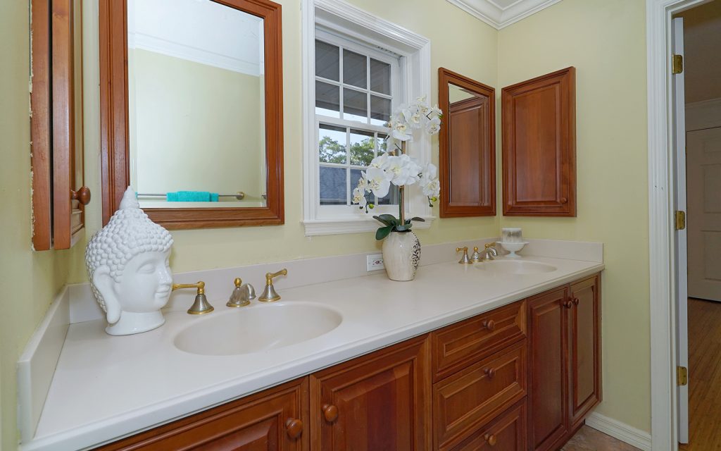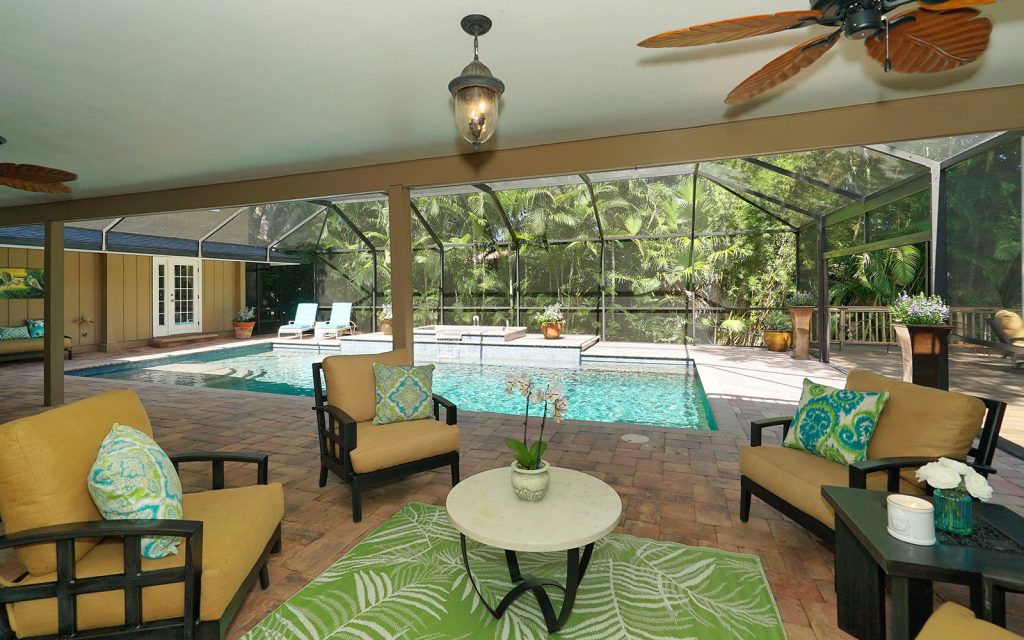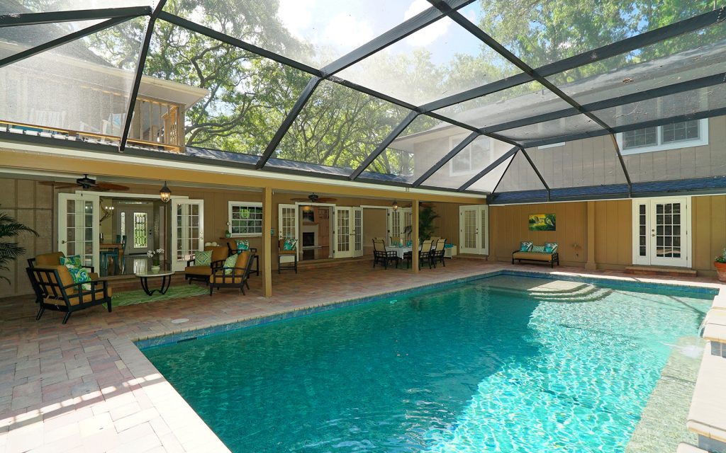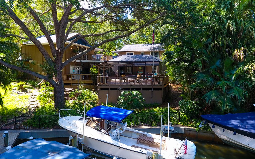 Everyone can have privacy in this home with five bedrooms, four with ensuite baths and two sharing a Jack and Jill bath. The master suite has its own second floor with 10 x 12 balcony overlooking the pool and canal. An additional second floor houses another two bedrooms. The remaining two bedrooms are on the first floor.