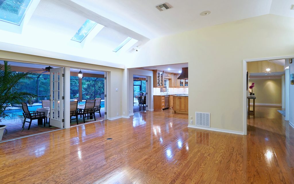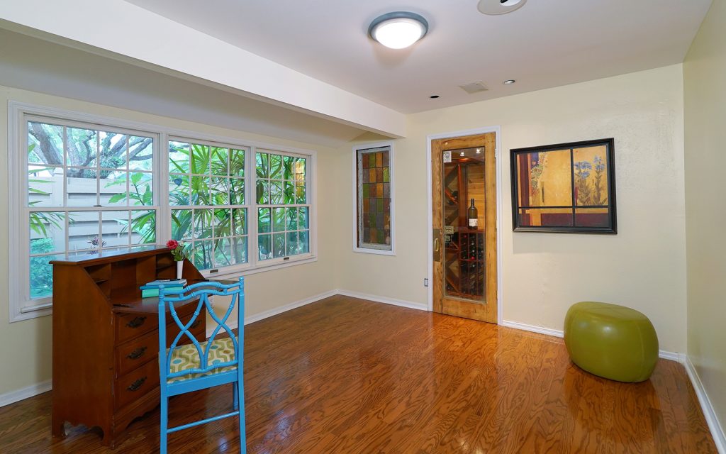 Designed with luxury and comfort in mind, this updated and remodeled home has spacious rooms perfect for entertaining family and friends. The kitchen is at the center of it all with professional Viking six-burner gas range with double ovens, beautiful solid-wood cabinets and granite countertops. SubZero integrated refrigerator and freezer drawers seamlessly blend into the cabinetry for a very clean look. The kitchen is open to the 400 square-foot living room that has three skylights and a wood burning fireplace. The formal living and dining rooms are on the other side of the kitchen. All living areas have solid-oak flooring and French doors to the covered lanai and pool area. The private office (which could be a 6th bedroom) has a climate-controlled wine storage closet.