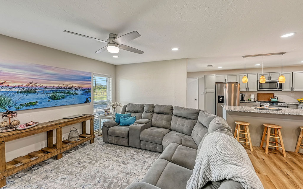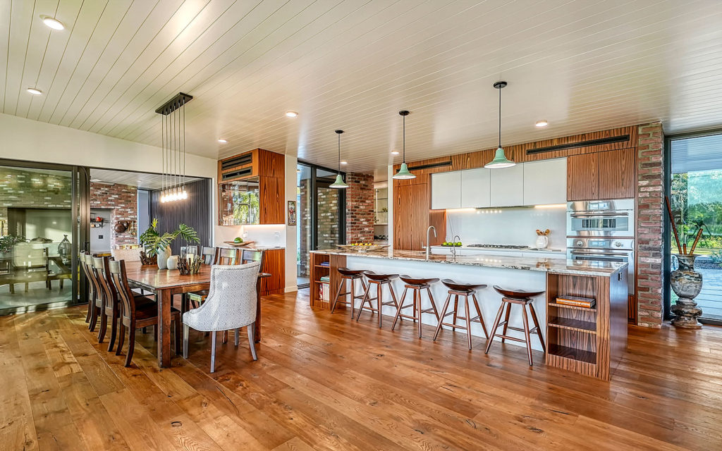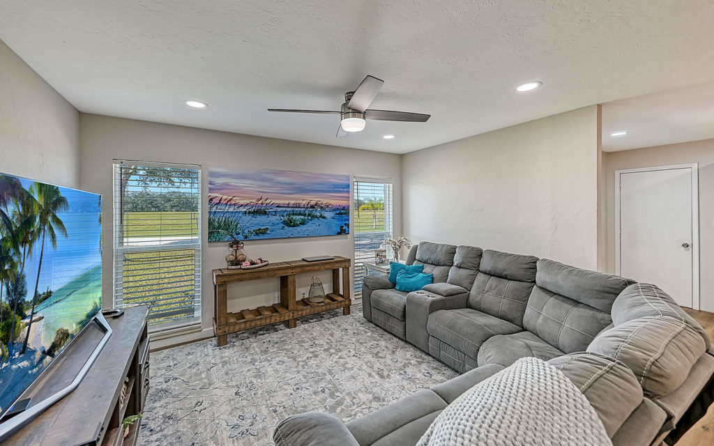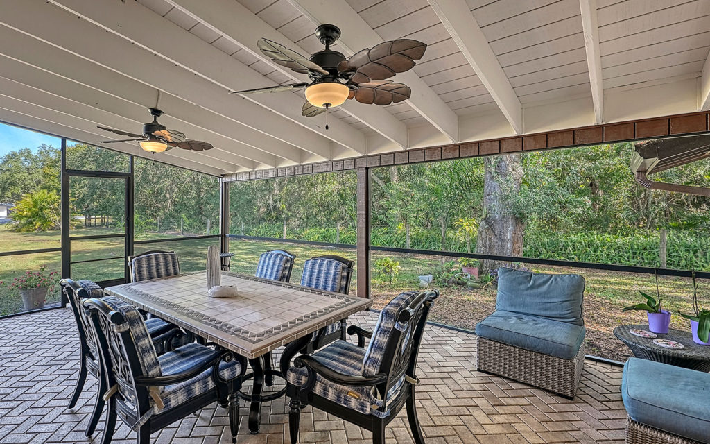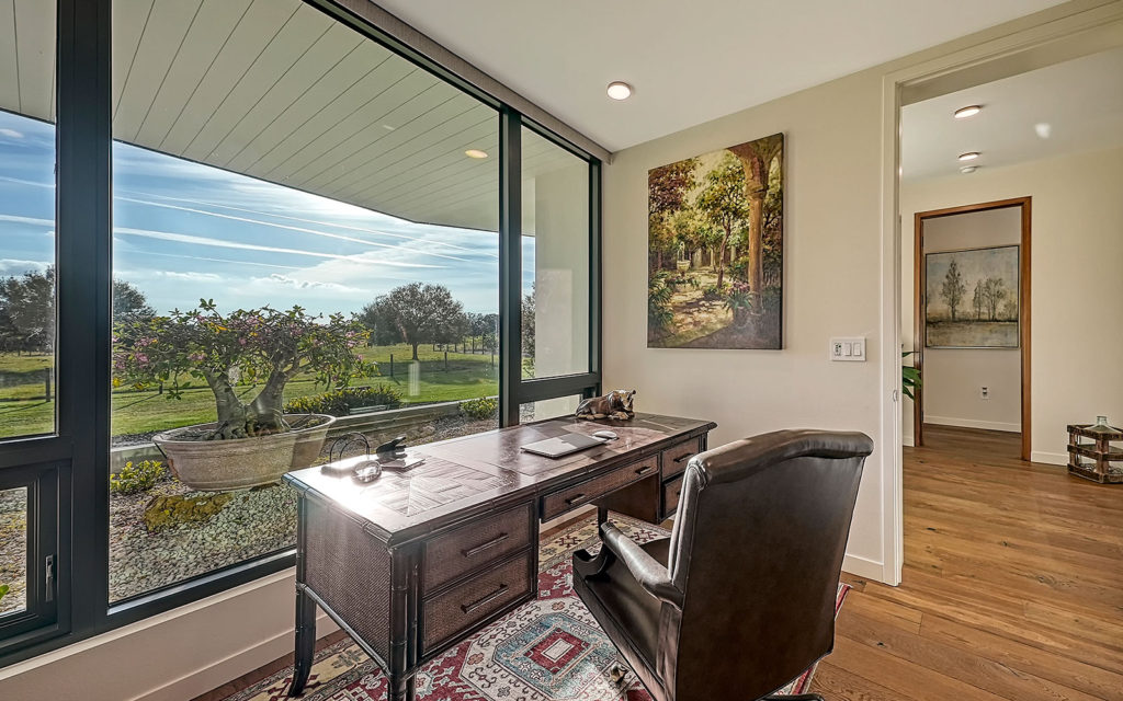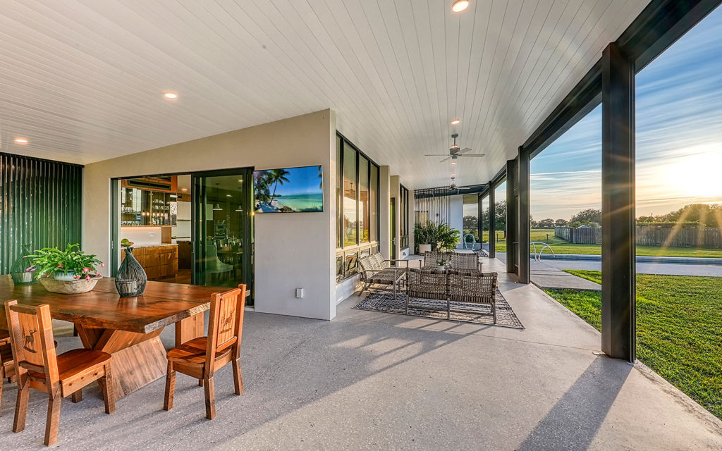A long, oak-canopied driveway sets the tone for life here, simultaneously sublime and down to earth. The 6,901 sq. ft. residence sits above grade for a commanding view of the lake and pastures. Spread out across a single level, the home comprises a series of indoor and outdoor areas, all under one roof, linked via open-air breezeways — a nod to Florida’s iconic “dog trot” architecture designed to surround living spaces with cooling breezes. The open floor plan establishes a connection between indoor and outdoor, highlighted by floor-to-ceiling glass along the entire northwest exposure of the home. The abundance of windows provides optimal natural light, air circulation and, of course, views. Wading birds, bobcats, turkeys, deer and foxes frequent the scenery — it’s magical!