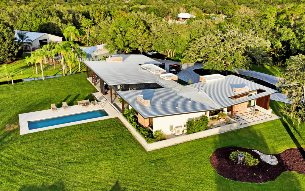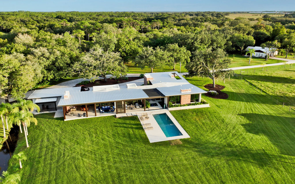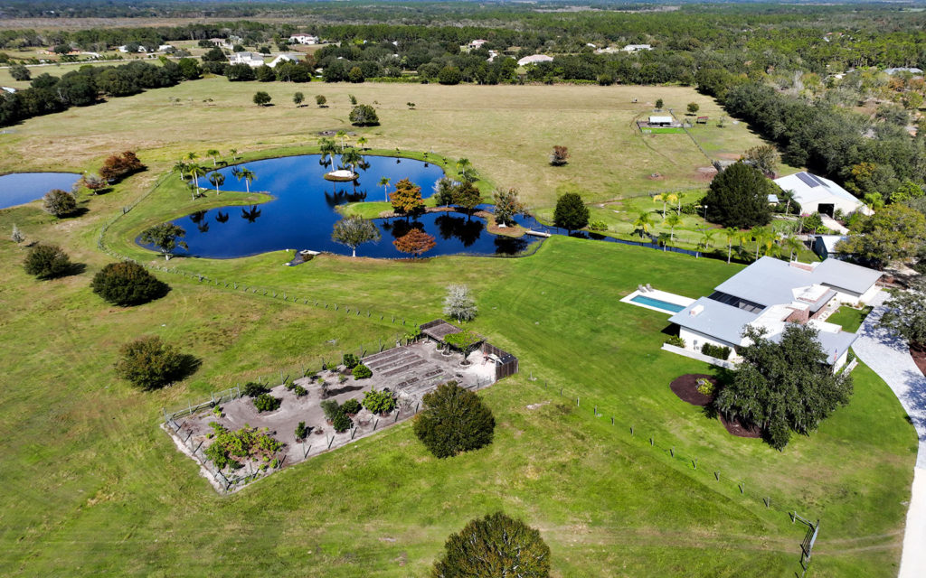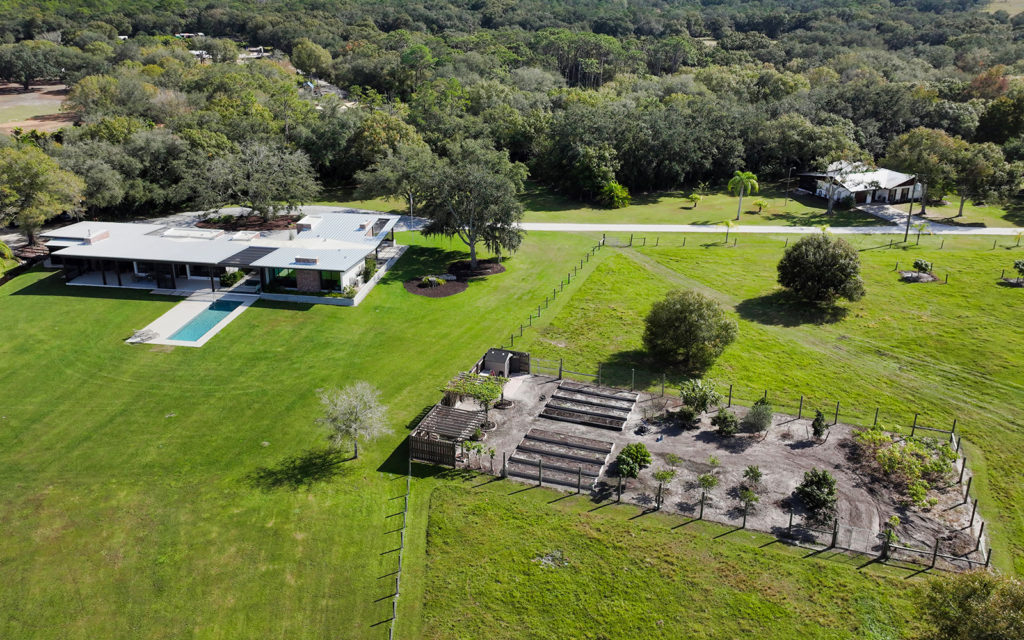 Lifestyle cattle ranch and farm on 42 acres on Florida’s Gulf Coast. Turnkey offering includes farm equipment and animals. The ultimate in sustainable luxury, this cutting-edge, one-of-a-kind residence was designed by Sweet Sparkman Architecture and built-in 2019 by Josh Wynne Construction. The fully-functioning homestead consists of the main residence, manager’s house, guest studio, workshop, horse barn, pole barn, three pastures, fenced food garden, stocked lake, cattle pond, two deep-water wells, farm equipment and a variety of farm animals, including cattle, pigs, goats, ducks, chickens and guinea hens. Green features include a 10kW solar array, insulated windows, Energy Star appliances, WaterSense fixtures, high-efficiency HVAC with humidity control and fresh-air exchange, rainwater capture, passive cooling and heating and a whole-house generator. Green certifications include NGBS Emerald certification and a HERS index of minus 31.