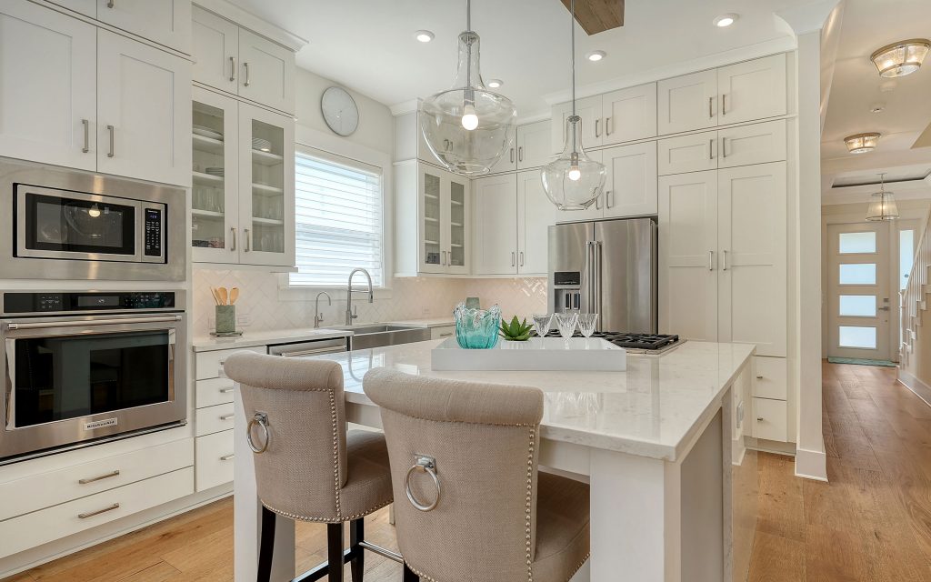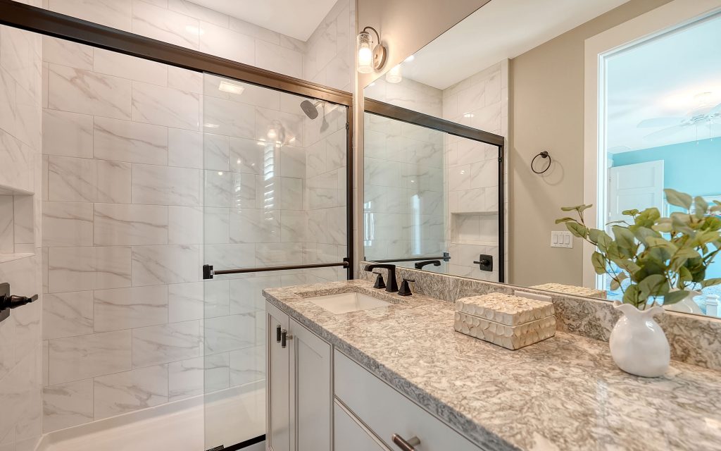 Create your urban oasis inside the flexible 2,798 sq. ft. floorplan. At the heart of the home is an open kitchen/great room space anchored by a substantial island where the cook is front-and-center, surrounded by solid-wood cabinetry, quartz countertops, stainless farmhouse sink and gas cooktop with downdraft ventilation. The great room features a peaked ceiling and flows into a screened-in covered lanai. The owners’ suite on the first floor includes his and her walk-in closets, ensuite bath with free-standing bathtub and walk-in shower, and access door to the pool area. The rest of the bedrooms are upstairs along with a bonus room. The studio apartment over the garage offers varied opportunities. It can be an in-law suite, a home office, an apartment or a vacation rental. The space includes a main room with convenience alcove and full bath.