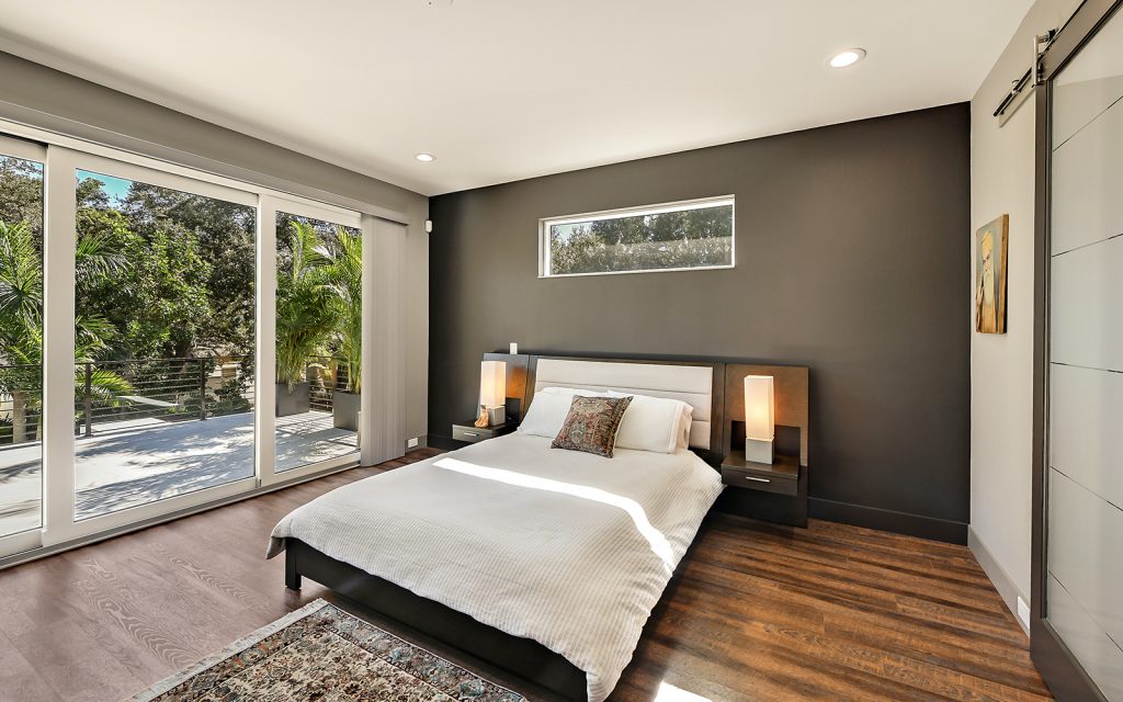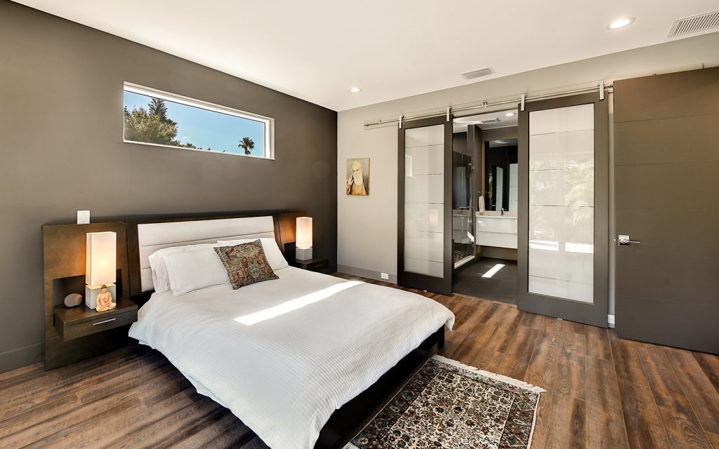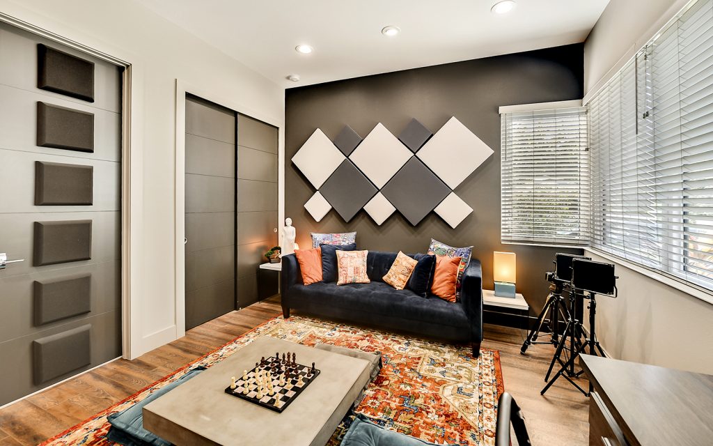 At the heart of the home is an expansive social space that incorporates kitchen, dining and living areas with wall-to-wall sliding glass doors to the zen-inspired patio, pool and garden. The kitchen, located in the health-boosting southwest quadrant, features a large center island surrounded by modern cabinetry, quartz countertops and best-rated LG stainless steel appliances. A two-sided eat-in counter extends from the island which can seat four for casual meals. Private retreats include three bedroom suites, two upstairs and one downstairs. The master suite is on the second floor and opens to a massive balcony. The unique master bath features a walk-in bathing area with open shower and bathtub. The downstairs bedroom is being used as a sound studio/office optimized for online/in-person meetings and video/audio recording. Outside, you’ll find the same uplifting atmosphere as inside. The open patio extends the social living space outdoors and includes an outdoor kitchen. The fully-fenced and gated backyard features a heated