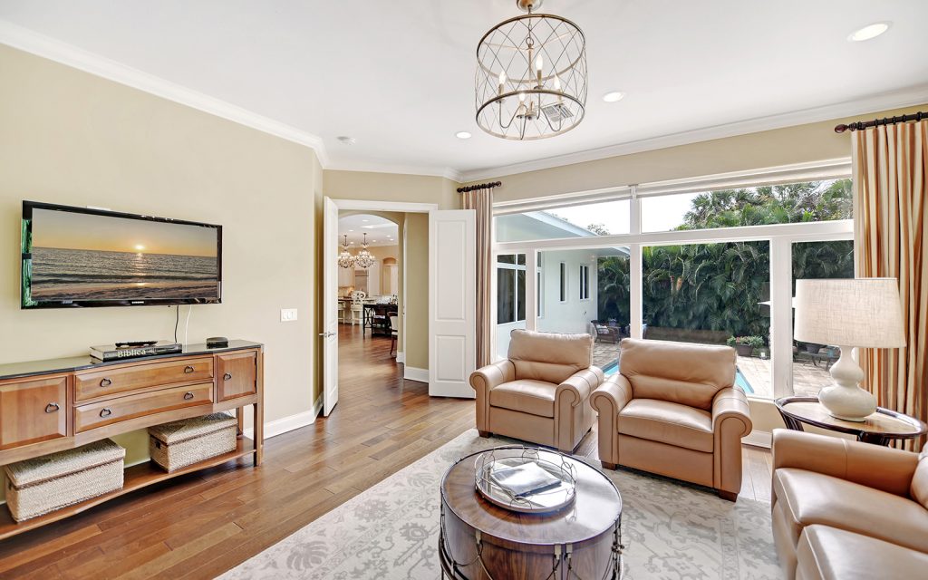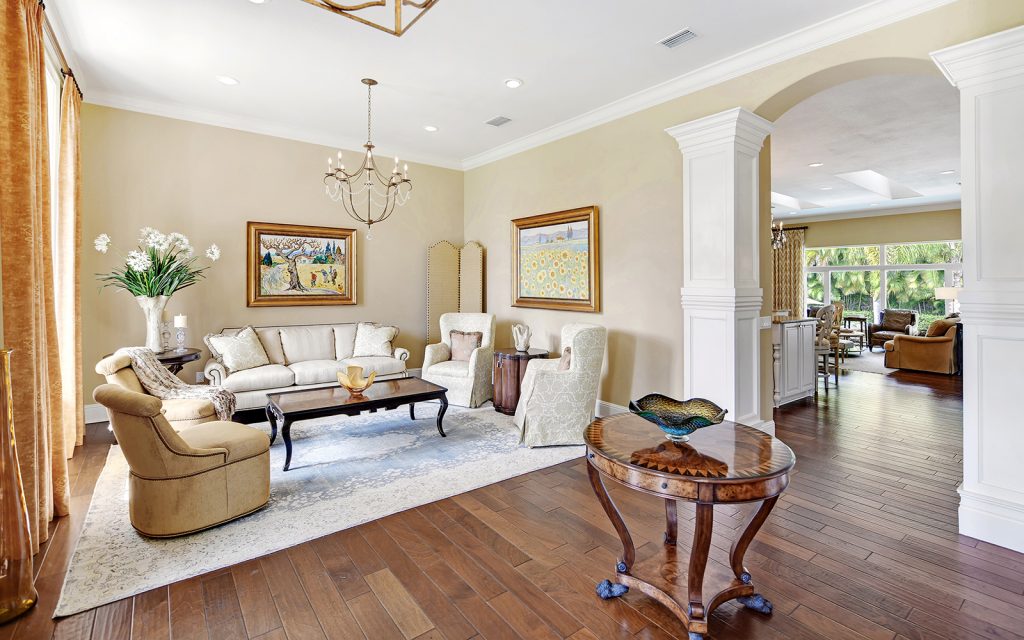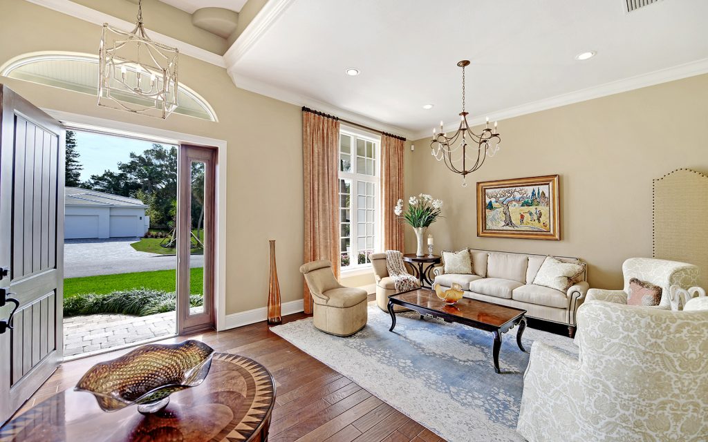 Elegant expression of West Indies style on Bird Key with classic design and Palm Beach inspired panache. This stunning residence, with 3,700 sq. ft. all on one floor, is situated in the back section of Bird Key where quiet and privacy provide a relaxed lifestyle.