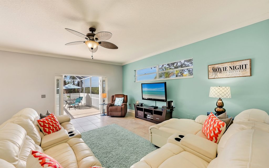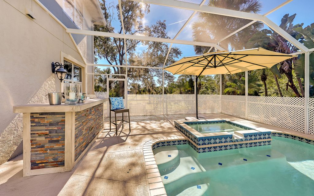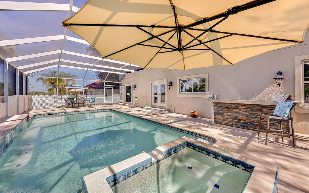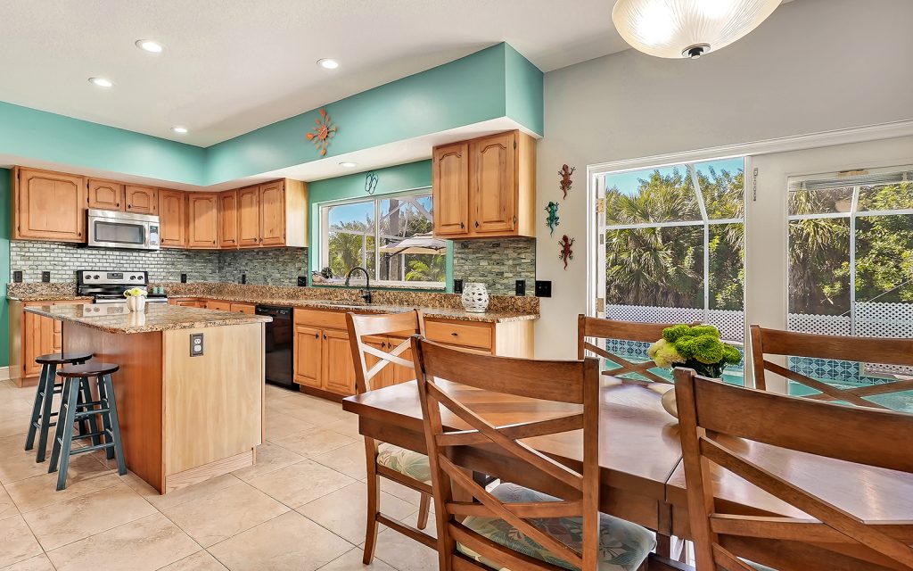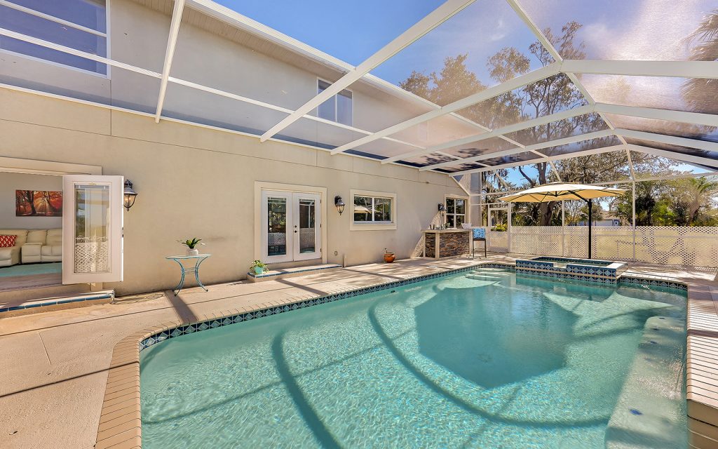 Designed with family and comfort in mind, the 3,468 sq. ft. home has plenty of room for every members of your family. Refreshing colors and an abundance of windows let the sun shine into this bright and cheerful house. The well-designed floor plan includes five bedrooms, three baths, living room, dining room, family room and eat-n kitchen. The fabulous kitchen has solid-wood cabinets, granite countertops, eat-in center island and breakfast room, plus plenty of counter space for multiple people to prep, cook and clean up. Large bedrooms provide comfort and privacy for everyone in a room of their own. The master retreat is extra large at 25×17 and features oversize windows with awe-inspiring views of the river. The screened-in, heated pool is large, too, and provides year-round family fun.