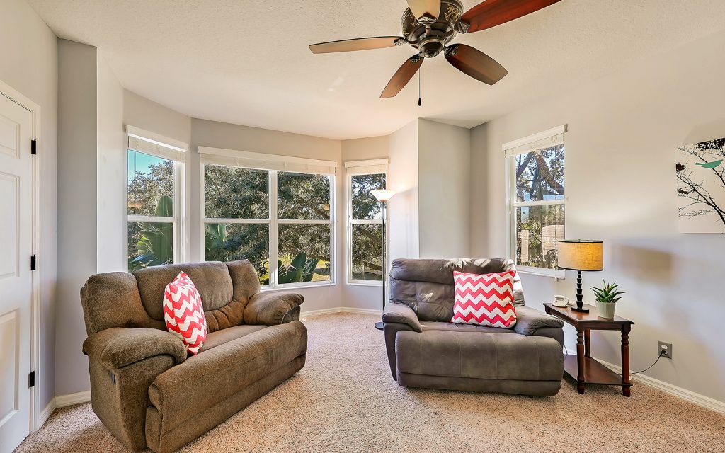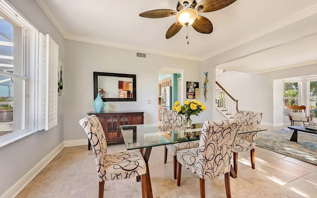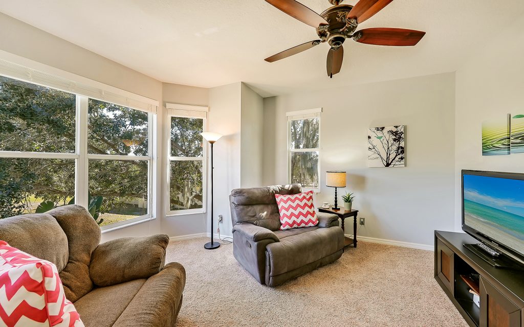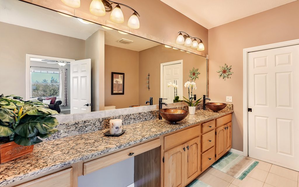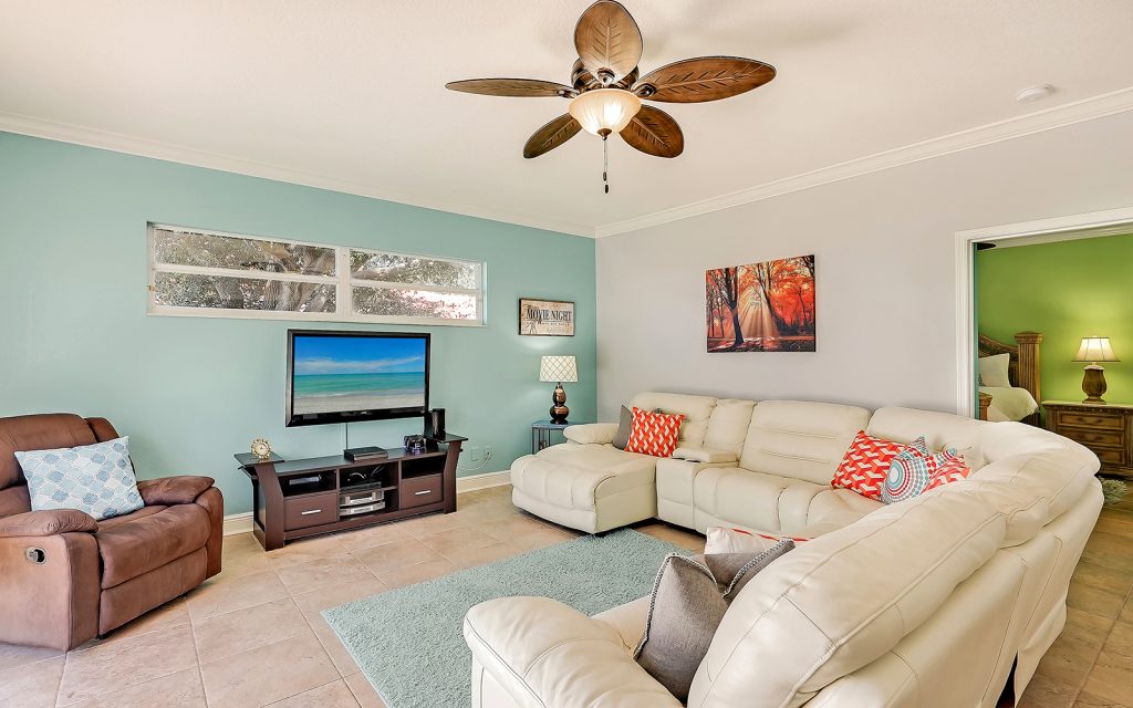Designed with family and comfort in mind, the 3,468 sq. ft. home has plenty of room for every members of your family. Refreshing colors and an abundance of windows let the sun shine into this bright and cheerful house. The well-designed floor plan includes five bedrooms, three baths, living room, dining room, family room and eat-n kitchen. The fabulous kitchen has solid-wood cabinets, granite countertops, eat-in center island and breakfast room, plus plenty of counter space for multiple people to prep, cook and clean up. Large bedrooms provide comfort and privacy for everyone in a room of their own. The master retreat is extra large at 25×17 and features oversize windows with awe-inspiring views of the river. The screened-in, heated pool is large, too, and provides year-round family fun.