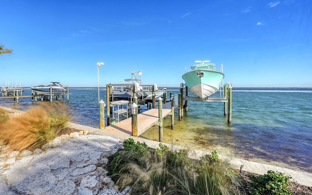Crystal clear coastal waters and brilliant blue skies converge to create a beautiful backdrop of sweeping views from this Anna Maria Island coastal paradise. 100-ft. on open water with boat dock, two boat lifts, two recreational craft lifts, and direct access to Tampa Bay and the Gulf of Mexico. Walk to Key Royale Club, the only golf course on the island. Ultra private and upscale, Key Royale is highly desired by boaters, anglers, yachtsmen and golfers.