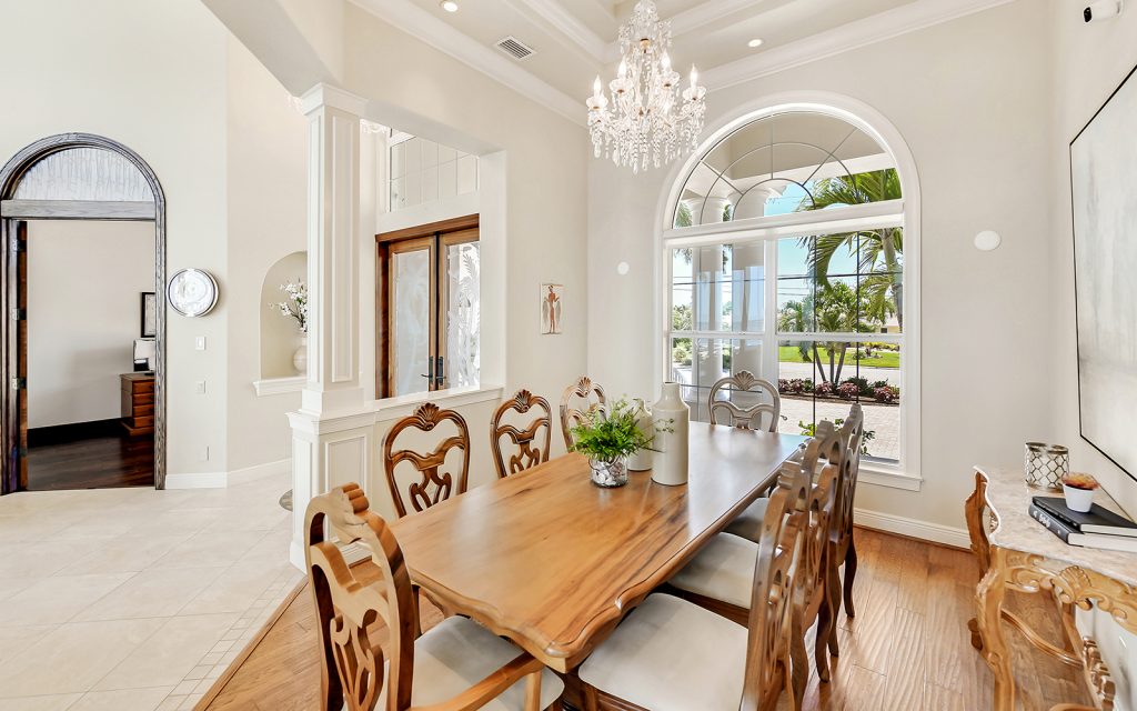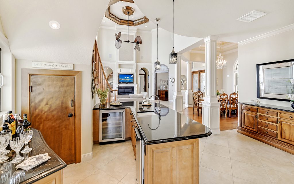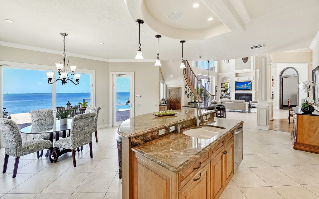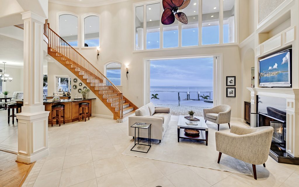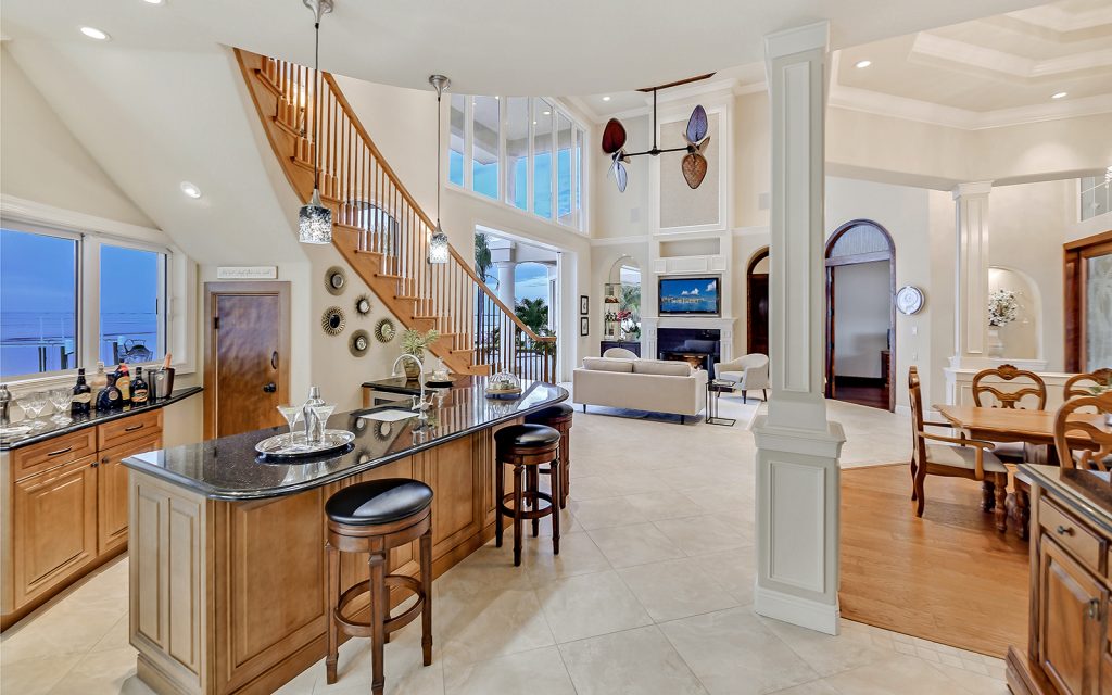 This stunning home has commanding curb appeal and solid concrete block construction from top to bottom. The timeless interior features high ceilings, open living space, elevator and oversize windows that frame the impressive water view. The home’s 4,651 sq. ft. includes 5 bedrooms, 4.5 baths, bonus room, office/den and open living area with living room, dining room, wet bar and kitchen.