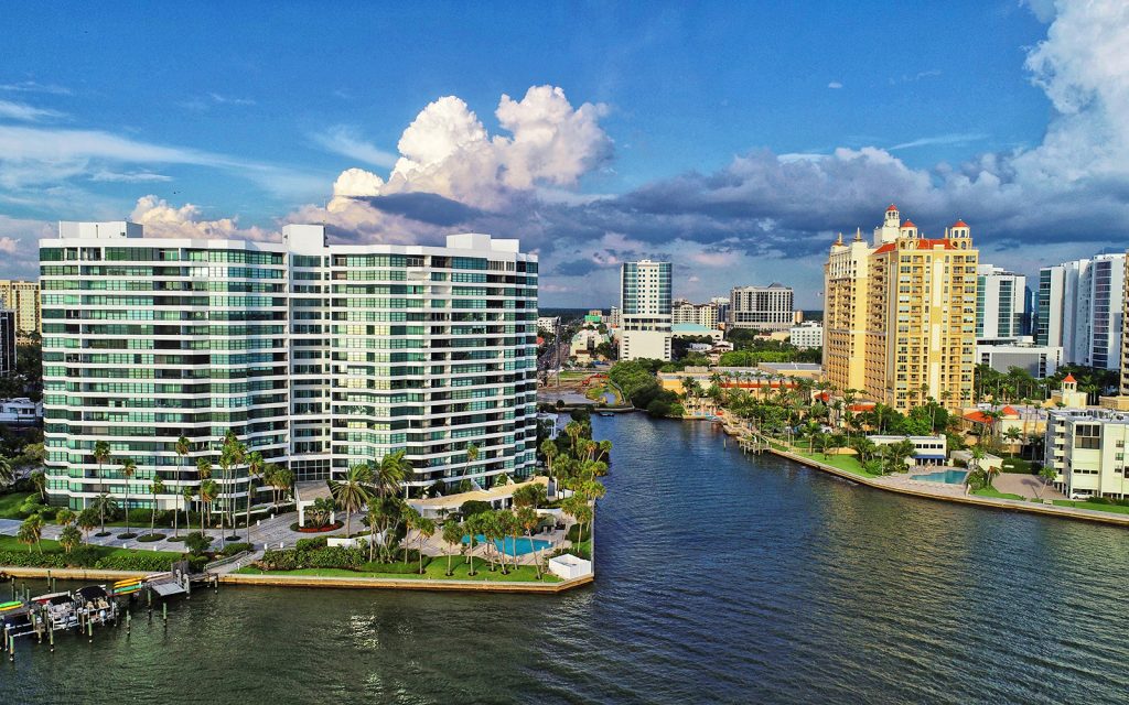 Condo on the Bay is Downtown Sarasota’s iconic bayfront condominium. Located at the end of Boulevard of the Arts where downtown meets Sarasota Bay, live every day with water views, and close proximity to shopping, dining and the arts. Boat docking and kayak storage are available for convenient access to water fun activities.