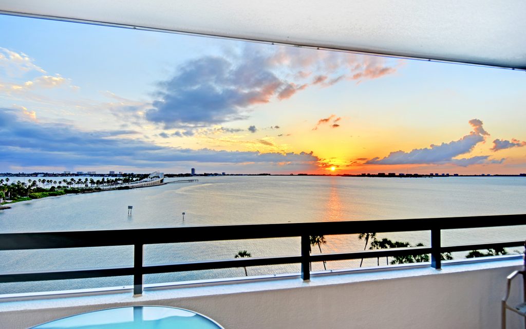 Downtown Sarasota waterfront condo with forever front row views of sunsets, wildlife and the colorful evening lights of Ringling Bridge and the keys. Condo on the Bay is Sarasota’s iconic bayfront condominium located at the end of Boulevard of the Arts where downtown meets Sarasota Bay. Live at the center of city life in walking distance to the Van Wezel Performing Arts Center, the new Bayfront Park, Sunset Pier and Quay shopping district. Boat slips and kayak storage are available for convenient access to water fun activities.
